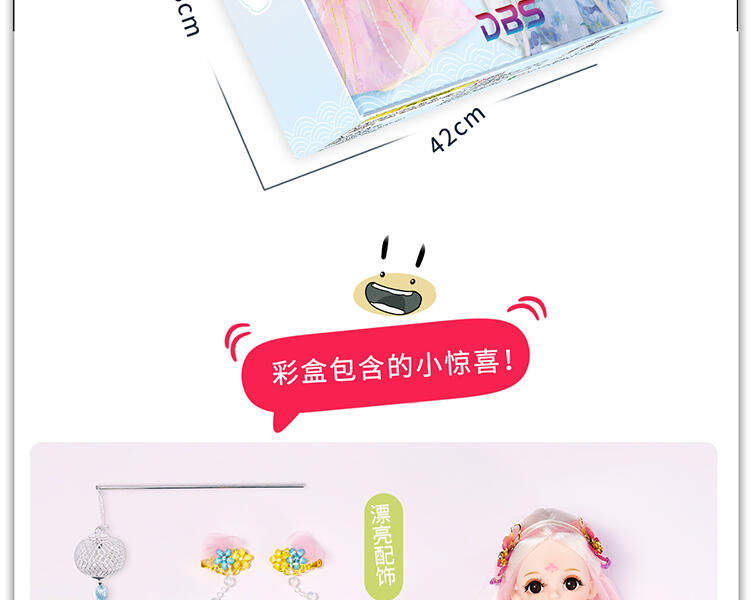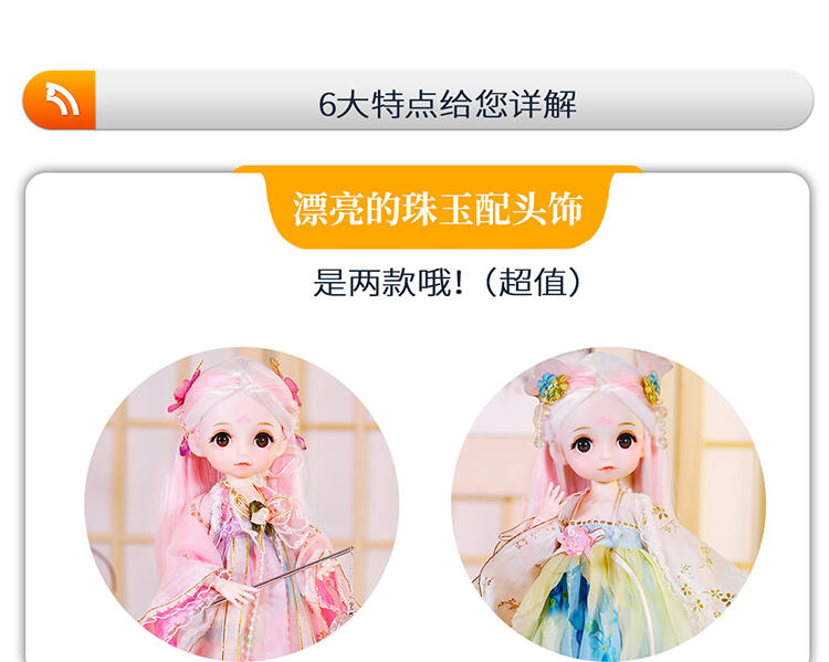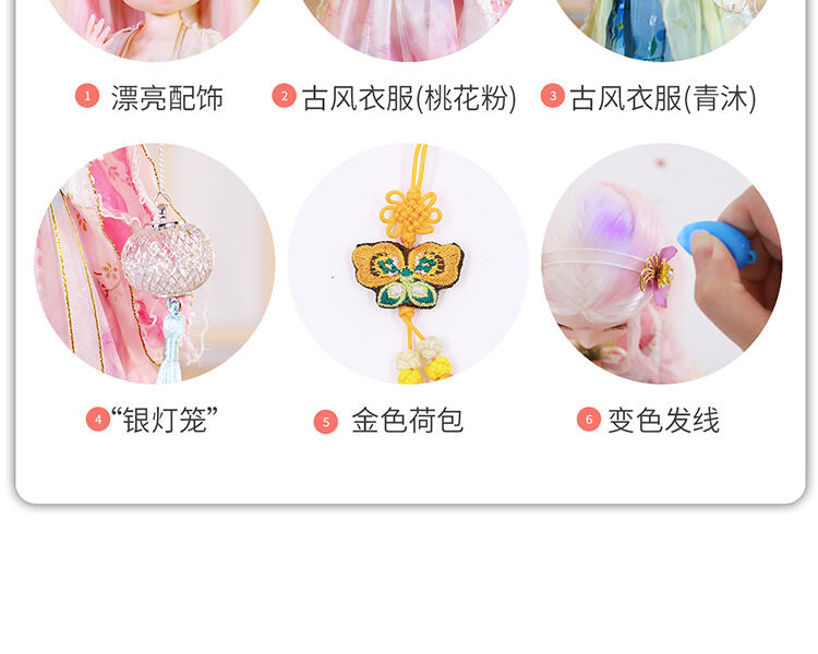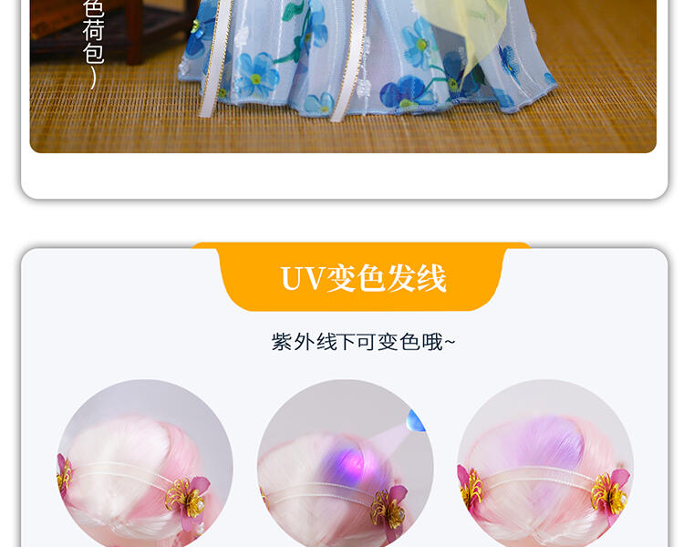 30公分高度小娃娃,灵活的关节,两套配饰,精致的小配件,头发在阳光底下可变色,让小孩体验更多户外乐趣。