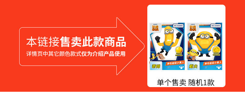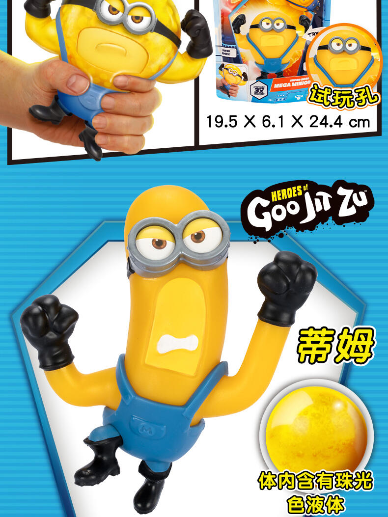 酷肌玩法的小黄人来了! 全身柔软且富有弹性,可拉伸至原来的3倍长度! 每款正面背面都有试玩孔,可直接体验不同的手感! 共有戴夫和蒂姆两种款式可供选择!