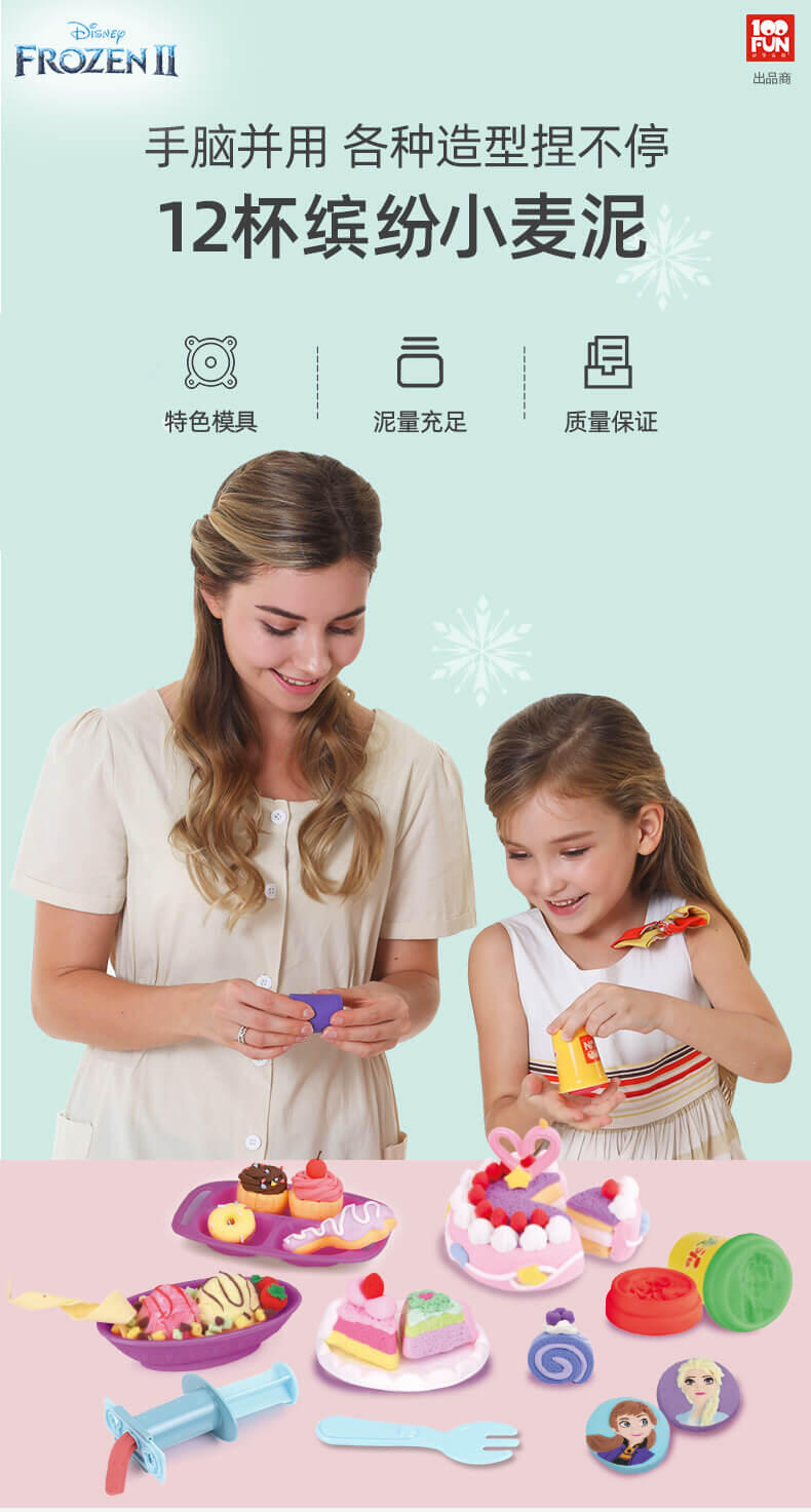 冰雪奇缘彩泥,12杯装,杯盖印有安娜艾莎等动画人物。颜色绚丽,安全材质,玩耍放心。