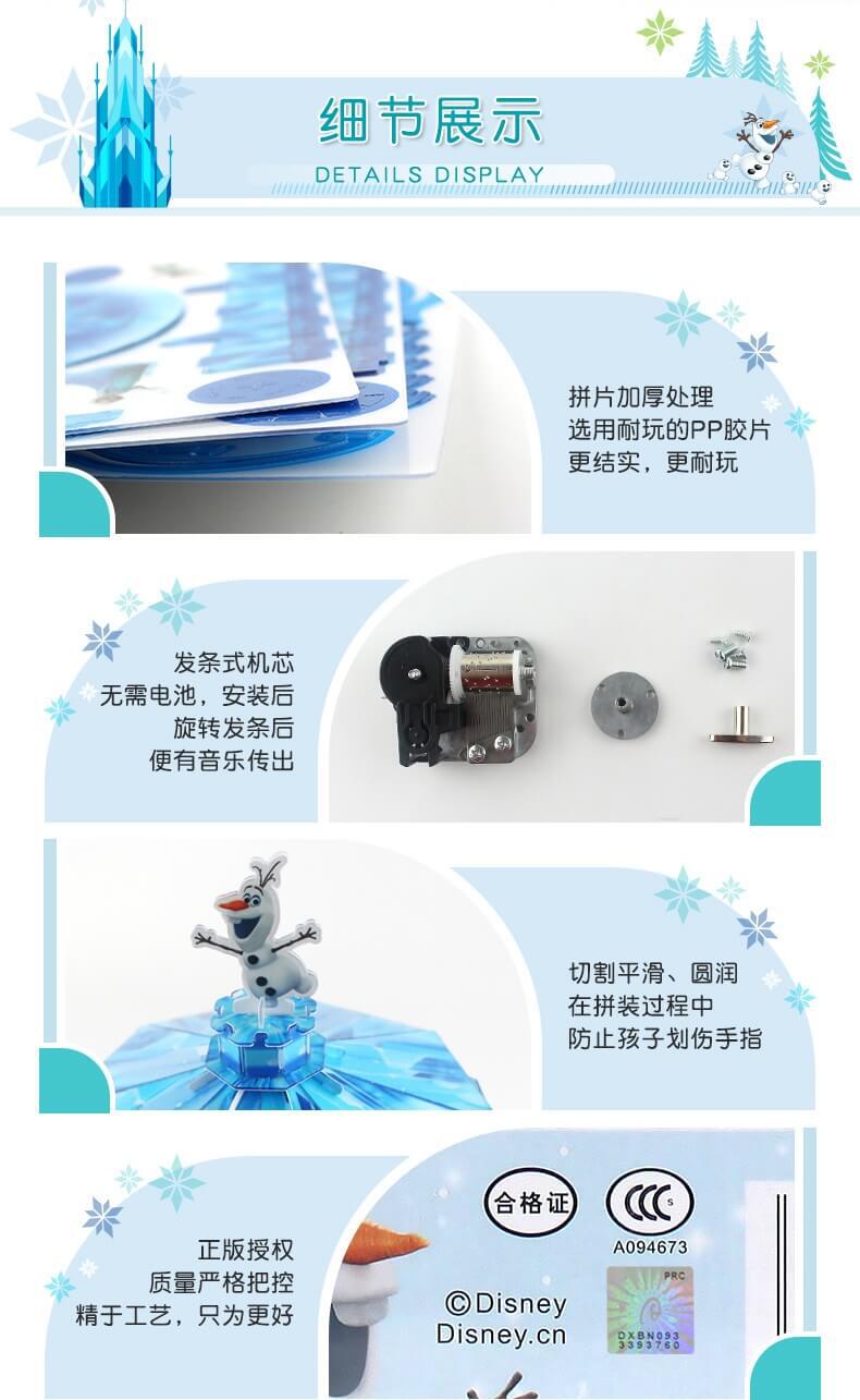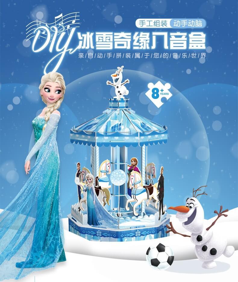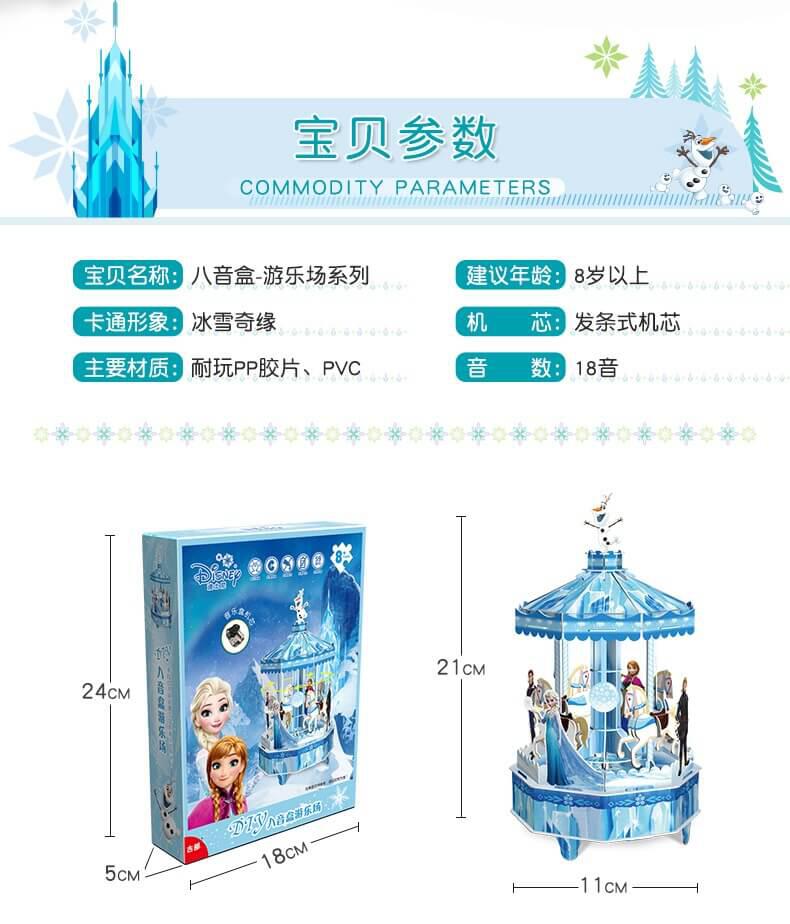 迪士尼冰雪奇缘八音盒旋转木马音乐盒3D手工diy玩具女生儿童礼物