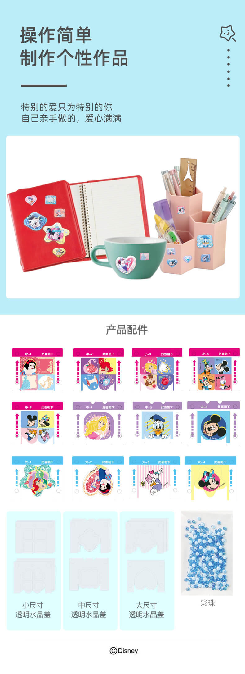 迪士尼正版授权,3c品质认证,动手自制贴纸 。