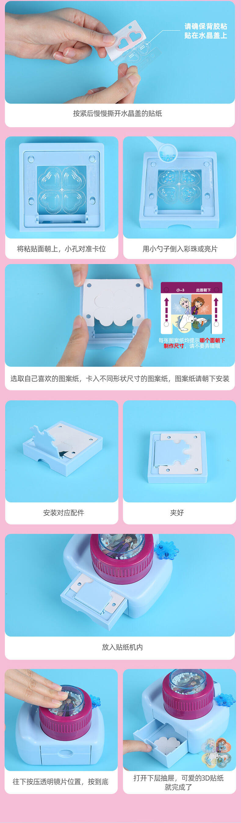 迪士尼冰雪奇缘2魔法3d贴纸机幼儿园手工diy制作材料女孩公主玩具。