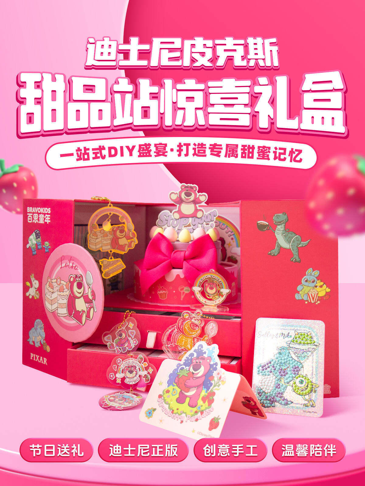 百思童年 迪士尼皮克斯草莓熊DIY甜品站惊喜礼盒