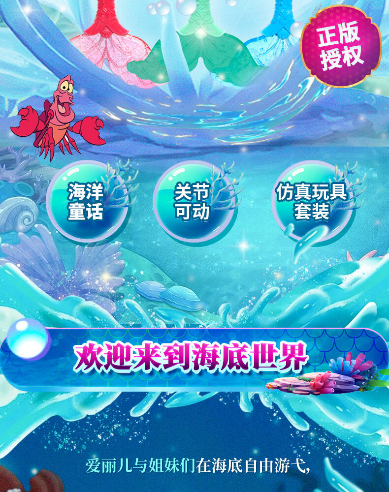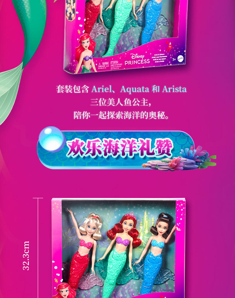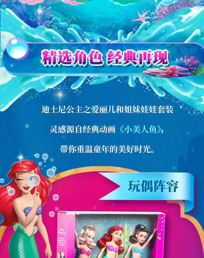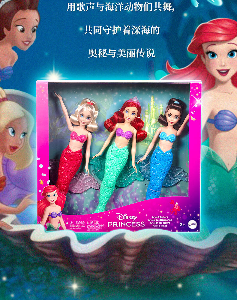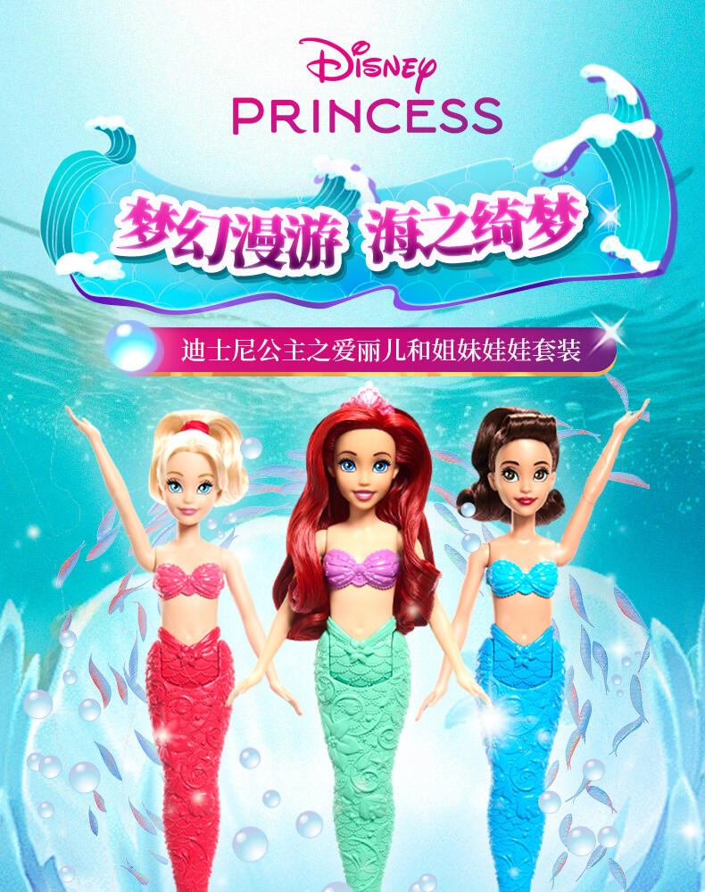 迪士尼公主系列之爱丽儿和姐妹娃娃套装