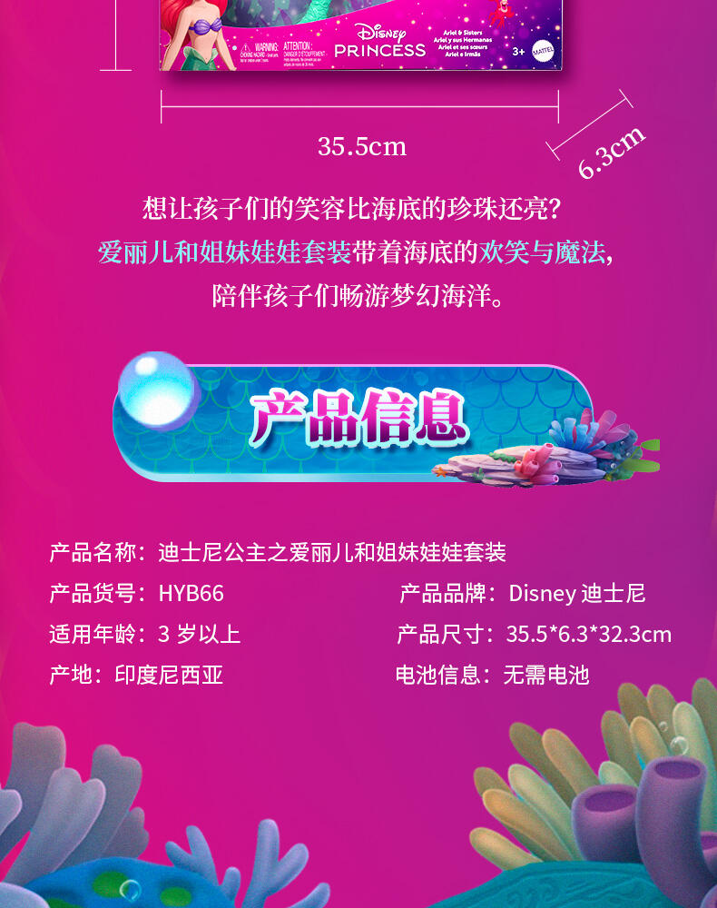 至迪士尼公主系列之爱丽儿和姐妹娃娃套装的链接已被复制