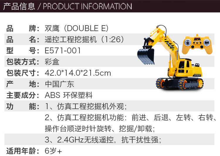 Double Eagle双鹰 1:26遥控工程挖掘机