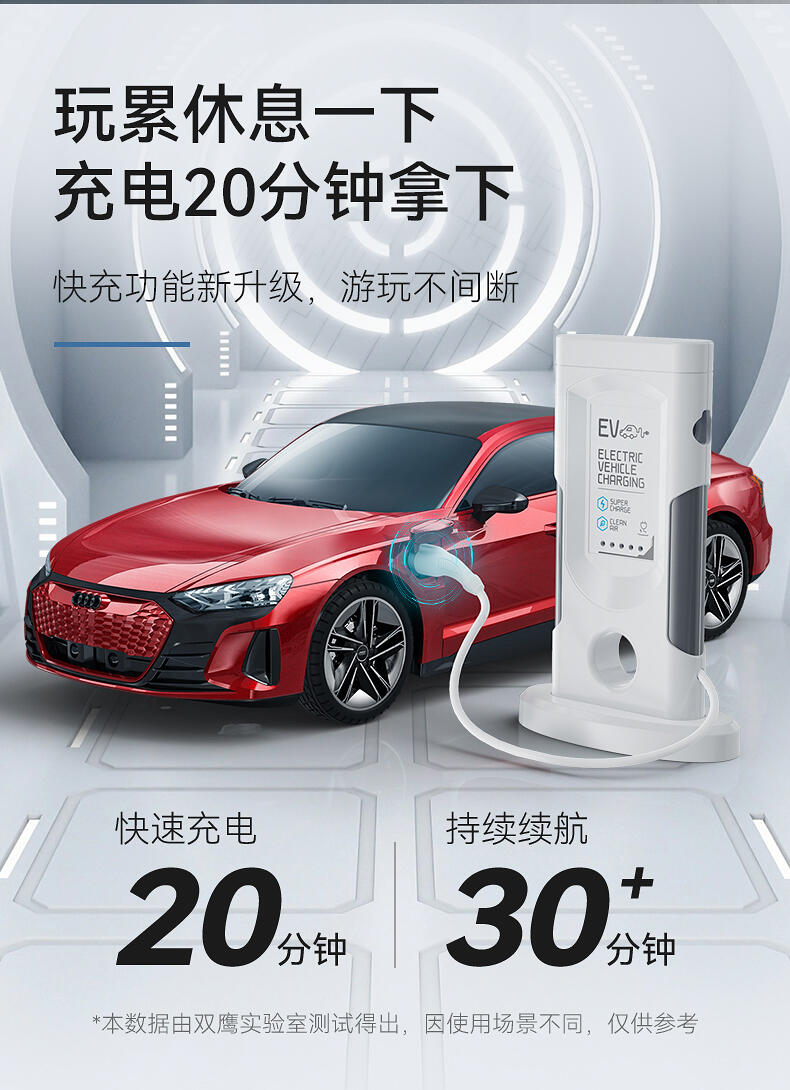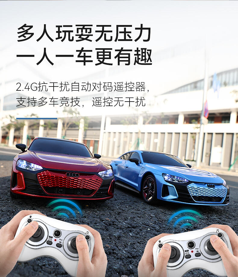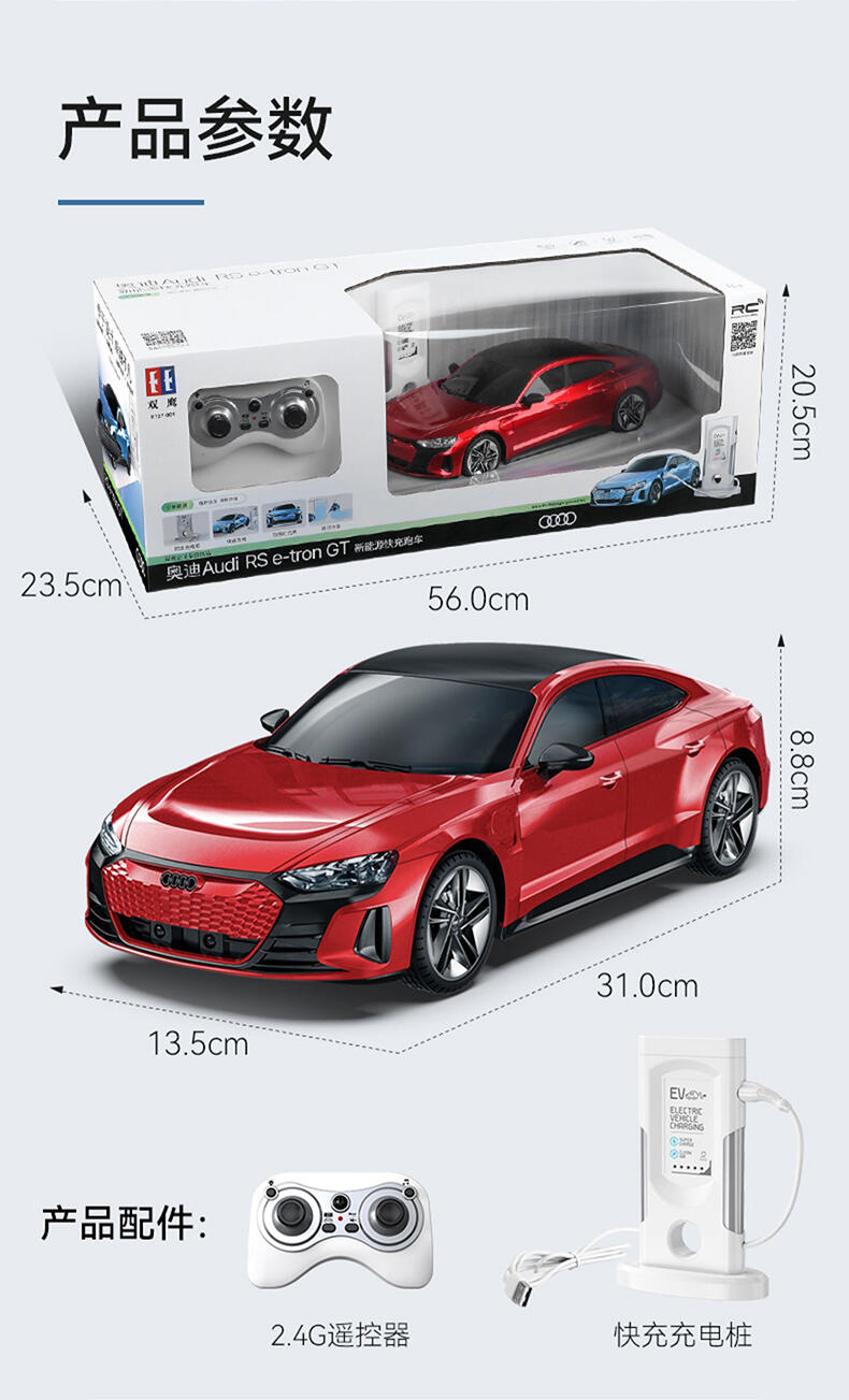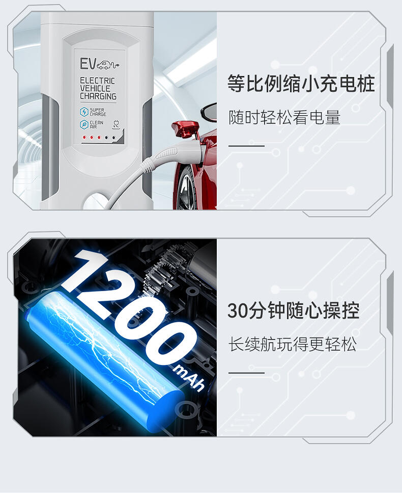 1、仿真新能源跑车外观与功能,搭配充电桩,时尚大方; 2、升级快充方案,充电20分钟,玩耍≥30分钟; 3、10种炫酷灯光秀模式,搭配4种节奏音乐模式,动感逼真,可独立随心切换; 4、自动泊车功能,高度仿真,体验感强; 5、全方位仿真遥控,前进/后退,左转/右转; 6、仿真车声:转向声、倒车声、鸣笛、静音切换; 7、前后LED仿真车灯,多种亮灯模式,支持夜间玩耍; 8、2.4GHz抗干扰自动对码,可多车竞技玩耍。 1、仿真新能源跑车外观与功能,搭配充电桩,时尚大方;