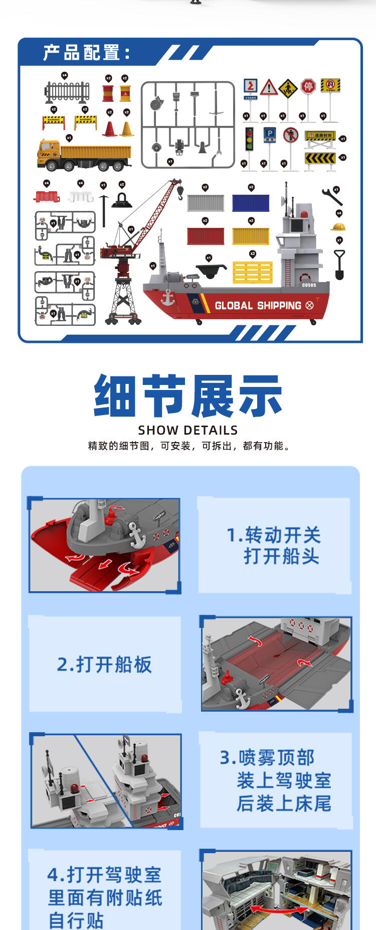 运输工具、人仔、小配件等多个仿真模型等比例打造国际港口场景;航空运输,体验卸货、搬运等港口运输流程玩法 本产品经过精心设计,优质材料制成,用心打磨细节,边缘光滑,适合小朋友玩耍,也可以与其他小朋友一起分享,和父母同玩,促进亲子关系发展。