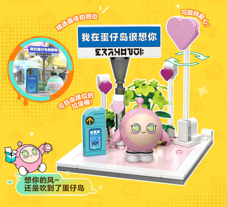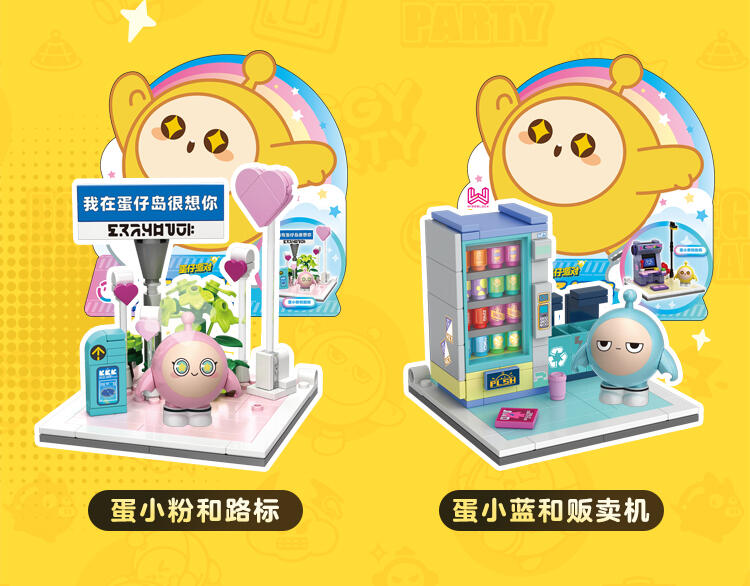 全国首款蛋仔场景积木 全新开模高还原蛋仔 主推人气款四小只对应主城主题 每2款可以实现相互连接 和蛋搭子一起拼搭蛋仔宇宙就是最大的快乐