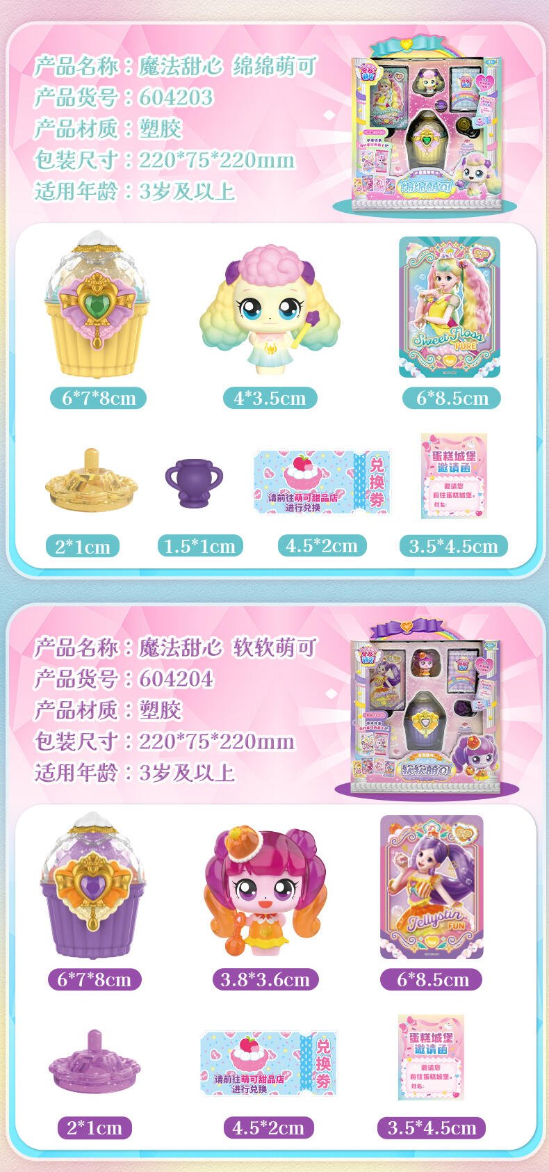 【产品配置】:绵绵萌可公仔*1、魔法罐道具*1、甜心魔方*1、底座*1、典藏SP卡*1、兑换券*1、邀请函*1 ①精致还原萌可形象,手办级收藏公仔。 ②配专属颜色的甜心魔方,魔方顶部奶油可拆卸,公仔可站立在魔方上,收纳与展示两不误。