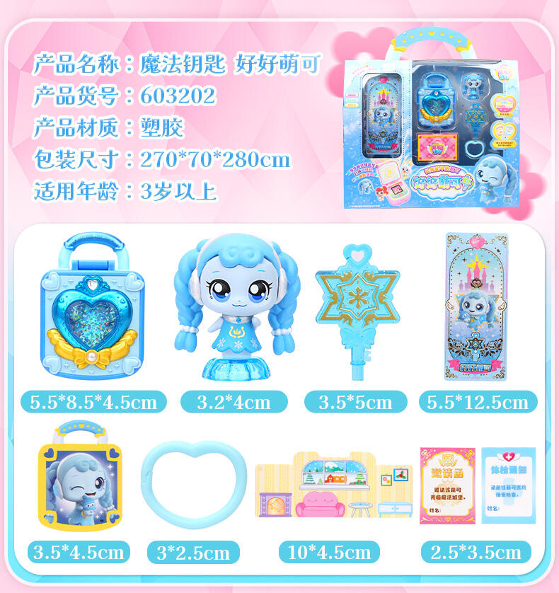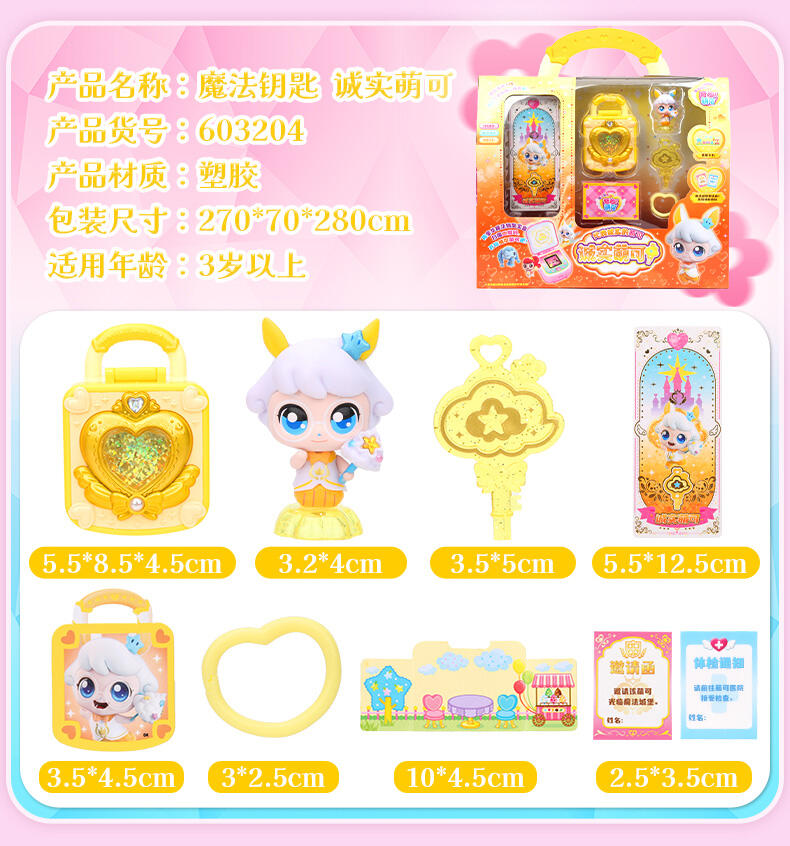 产品配置:公仔*1,底座*1,钥匙魔方*1、背景卡*1、专属钥匙*1,钥匙环*1、萌可捕捉二维码卡片*1、萌可角色卡*1