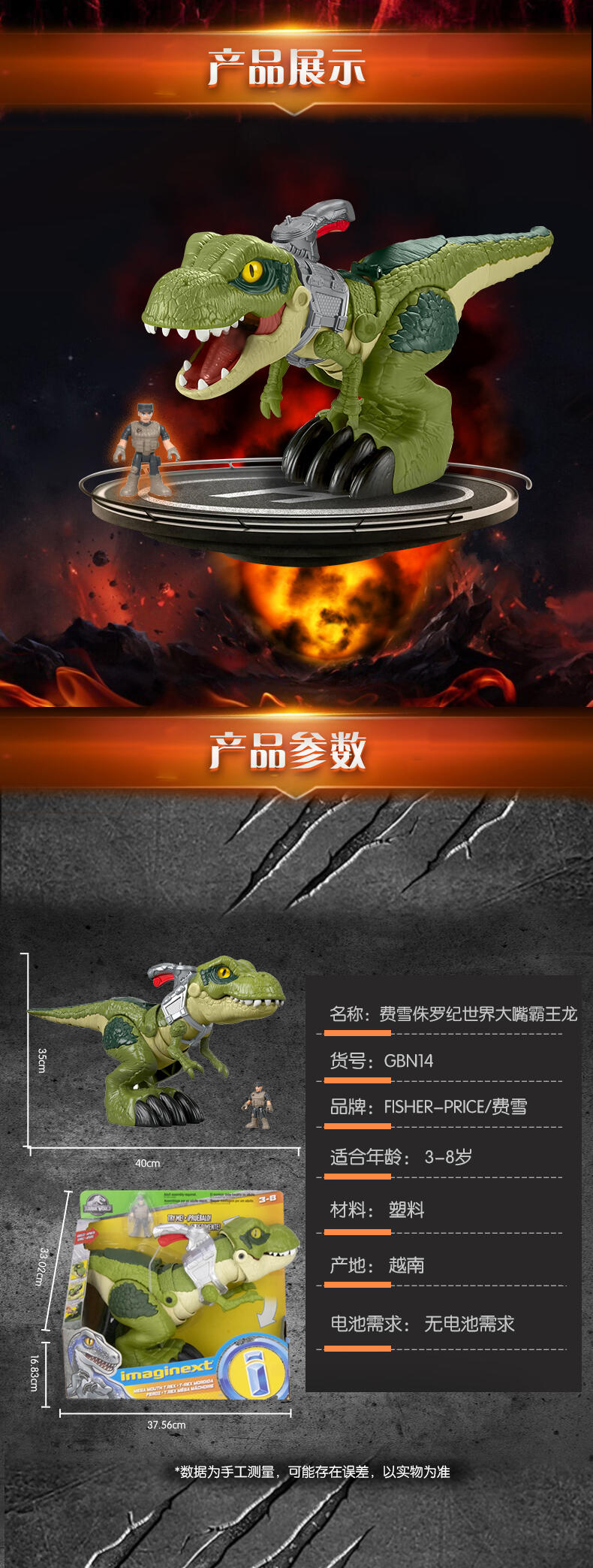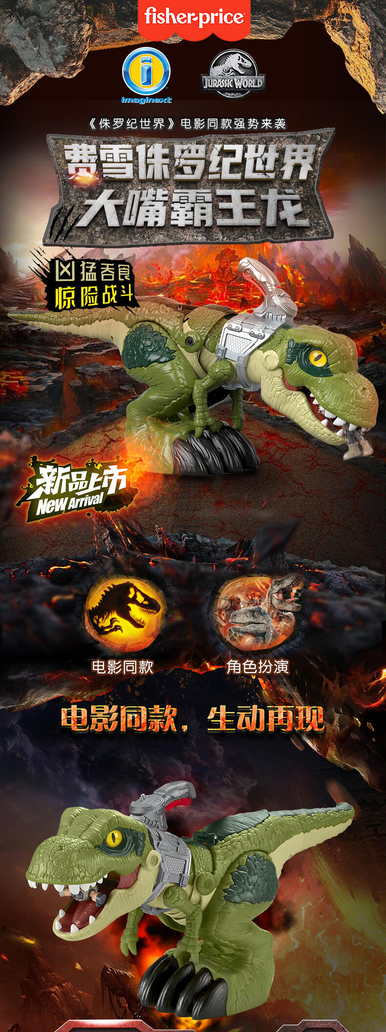 Fisher- Price费雪 Jurassic World 侏罗纪世界大嘴 霸王龙