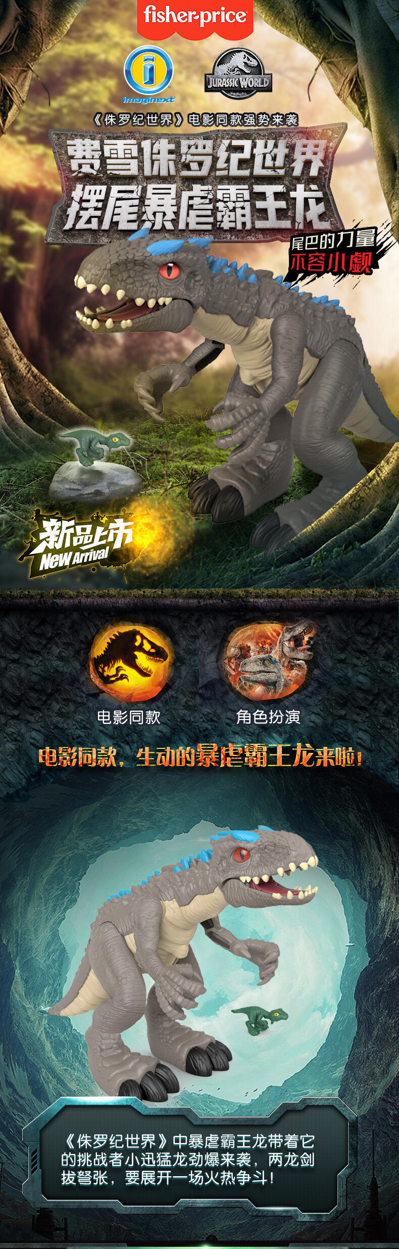 Fisher-Price费雪 Jurassic World侏罗纪世界摆尾 暴虐霸王龙