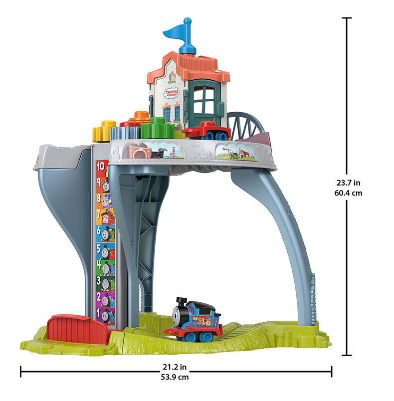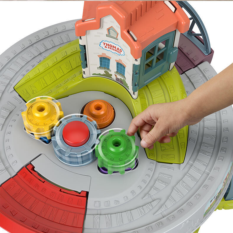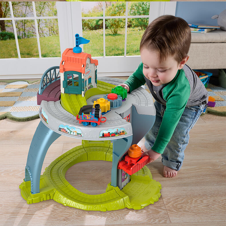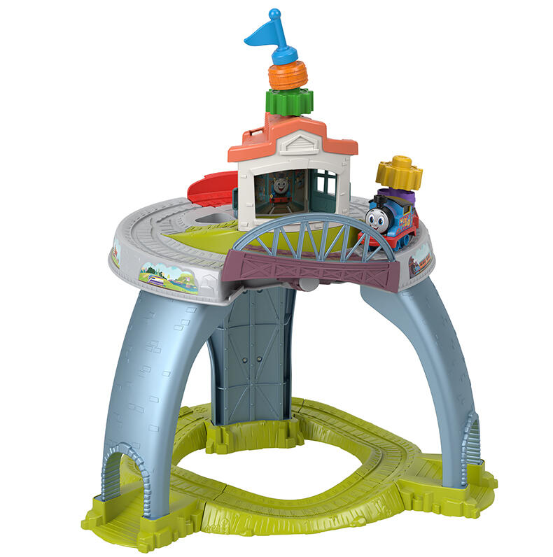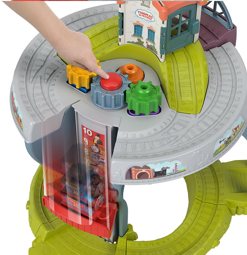 1.可以从桌面玩到地面的游戏桌,桌面和底部都有轨道 ,还有一台工作电梯 2.有趣的抓握玩具:提茅斯机房、倾倒桥、形状分类和堆叠玩具 3.可以把宝宝的幼儿托马斯玩具带到桌面上,宽展托马斯和朋友世界