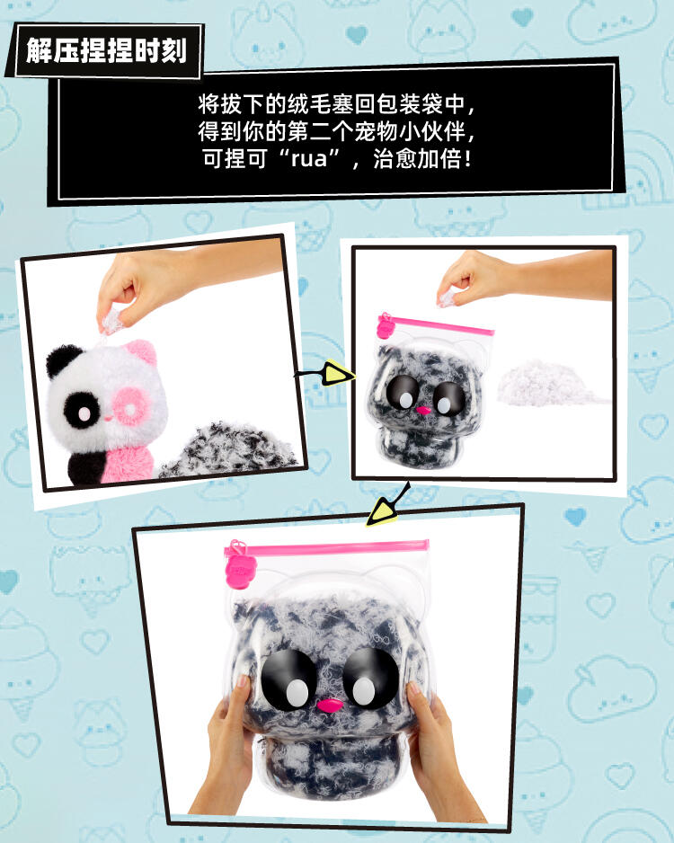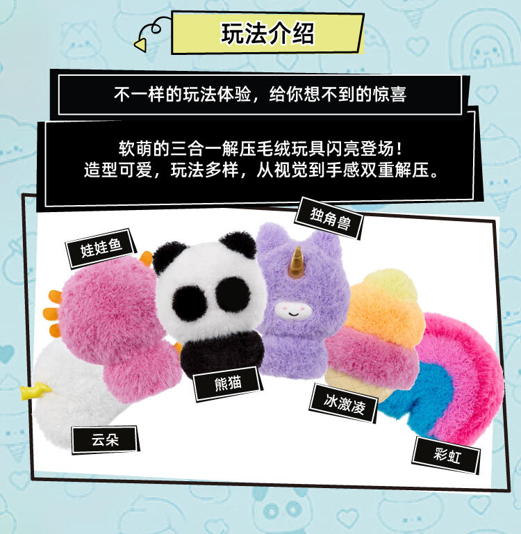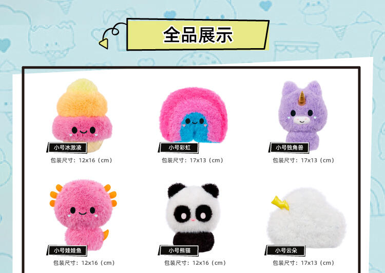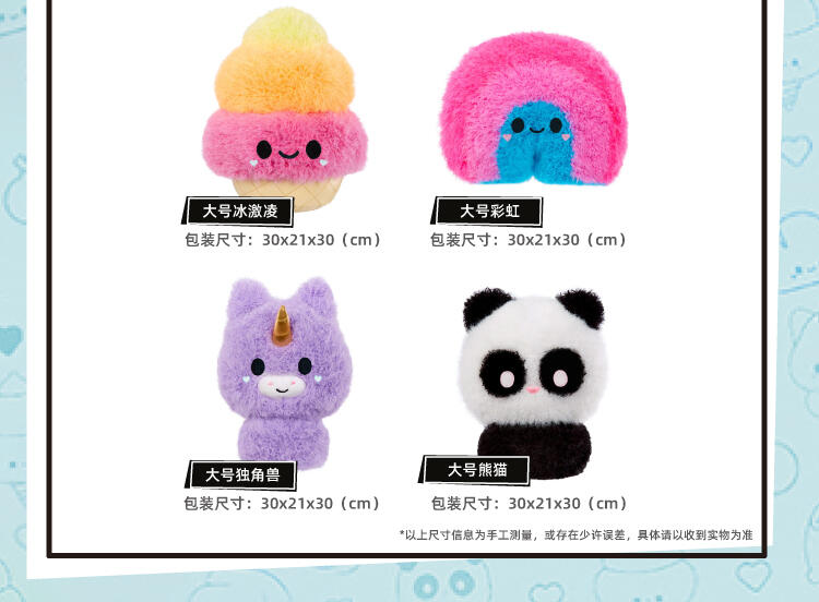 包装兼作绒毛的储存袋,还可以成为你的第二个毛绒朋友!超级多有趣的毛绒造型可以收集!