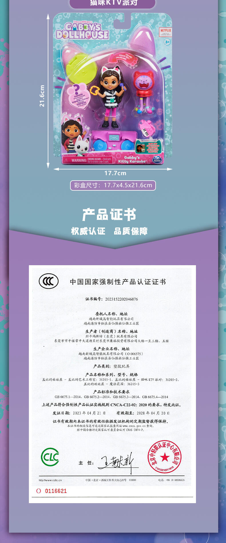 内容:包括:1个玩偶形象,1个动物雕像,1件家具,1件娃娃房送货,1个配件,1个说明书