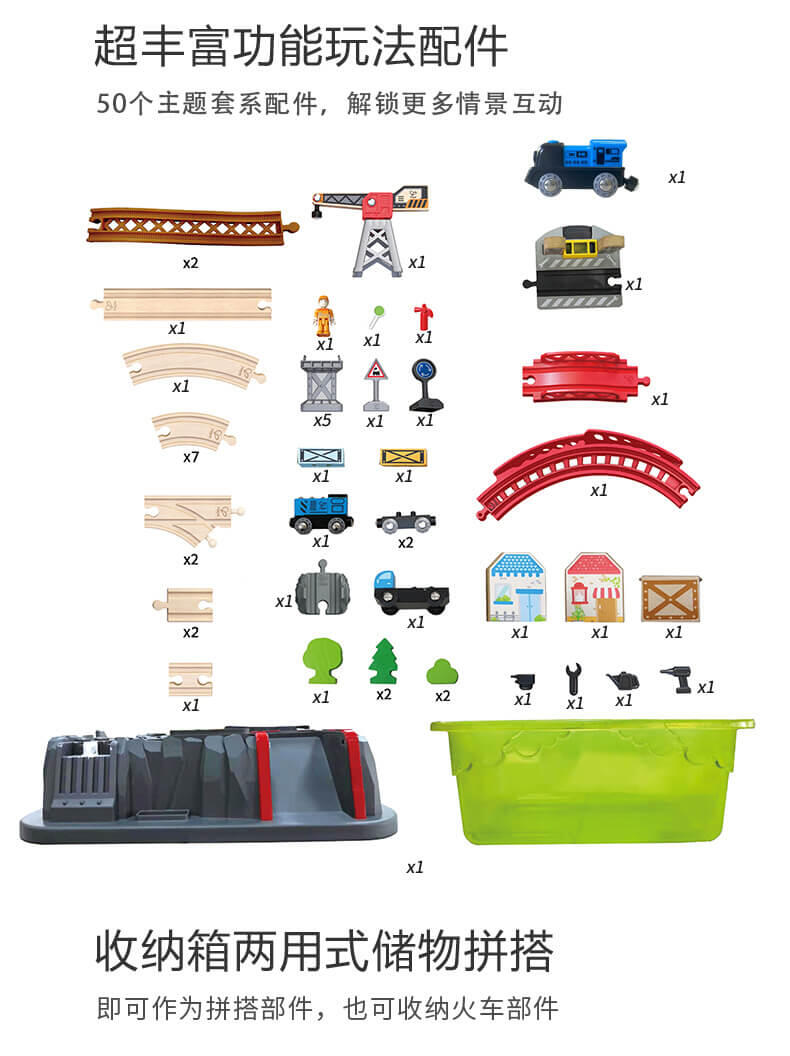 收纳箱两用式储物拼搭,打造宝宝的专属火车帝国。