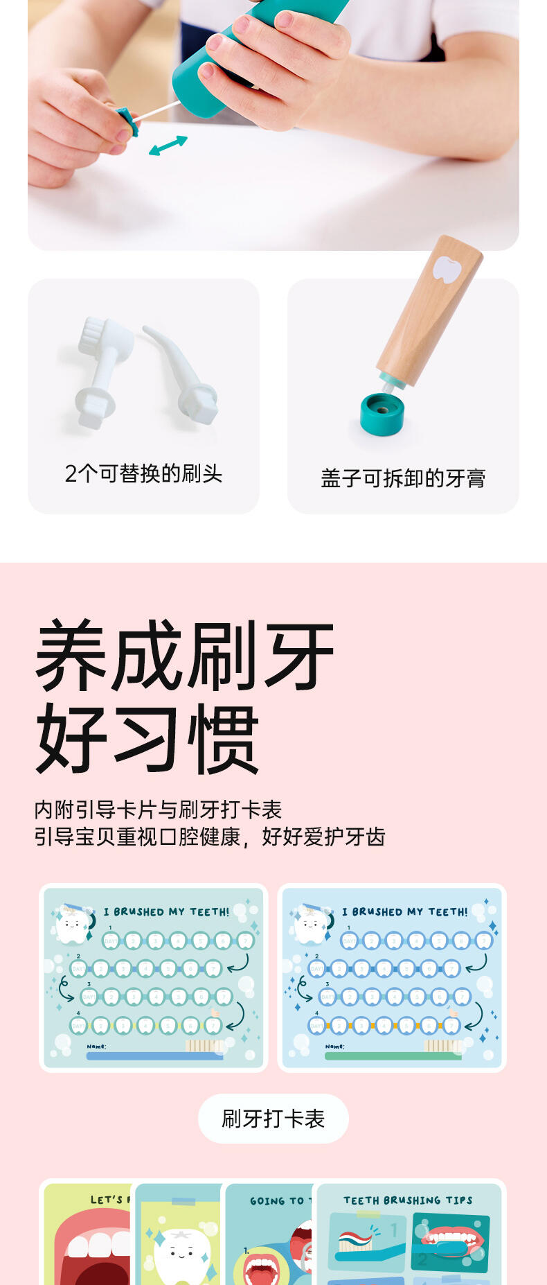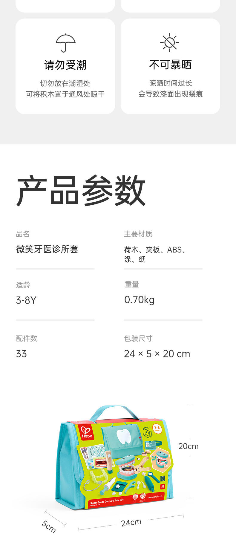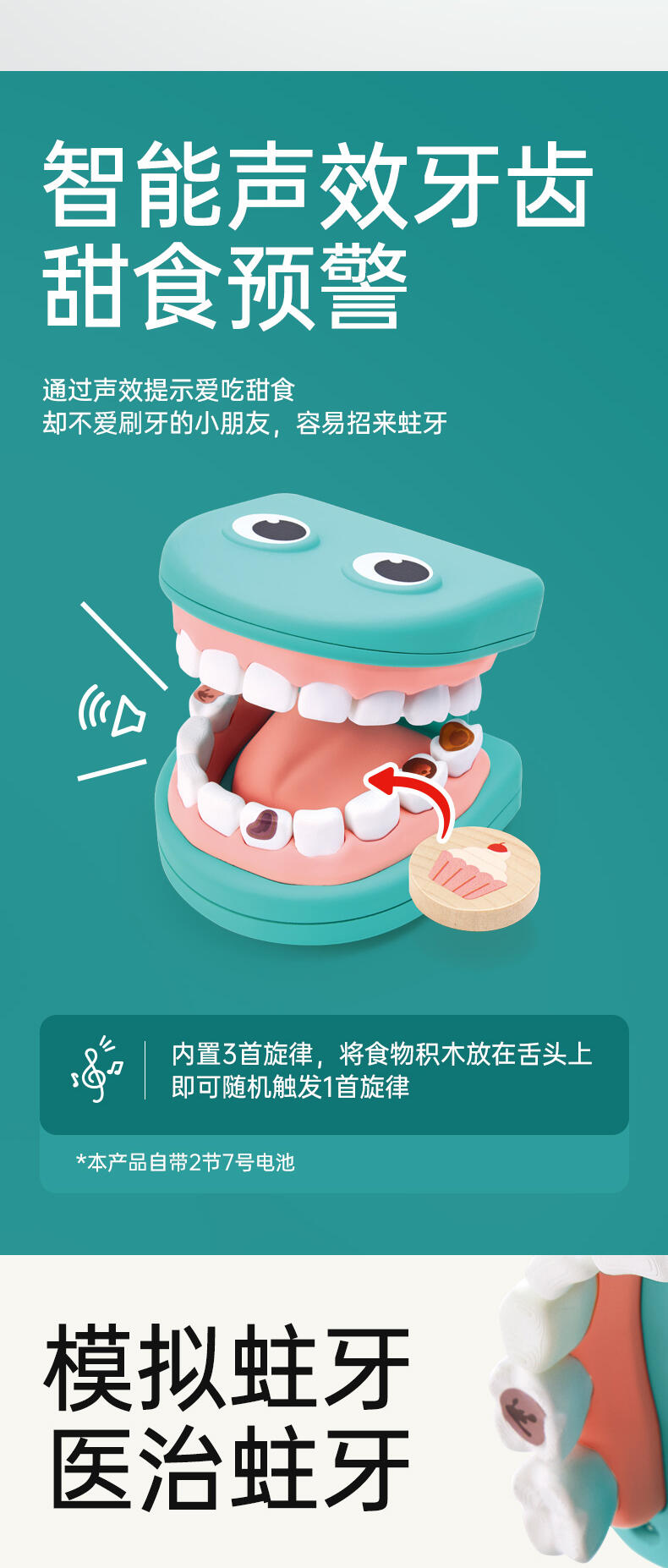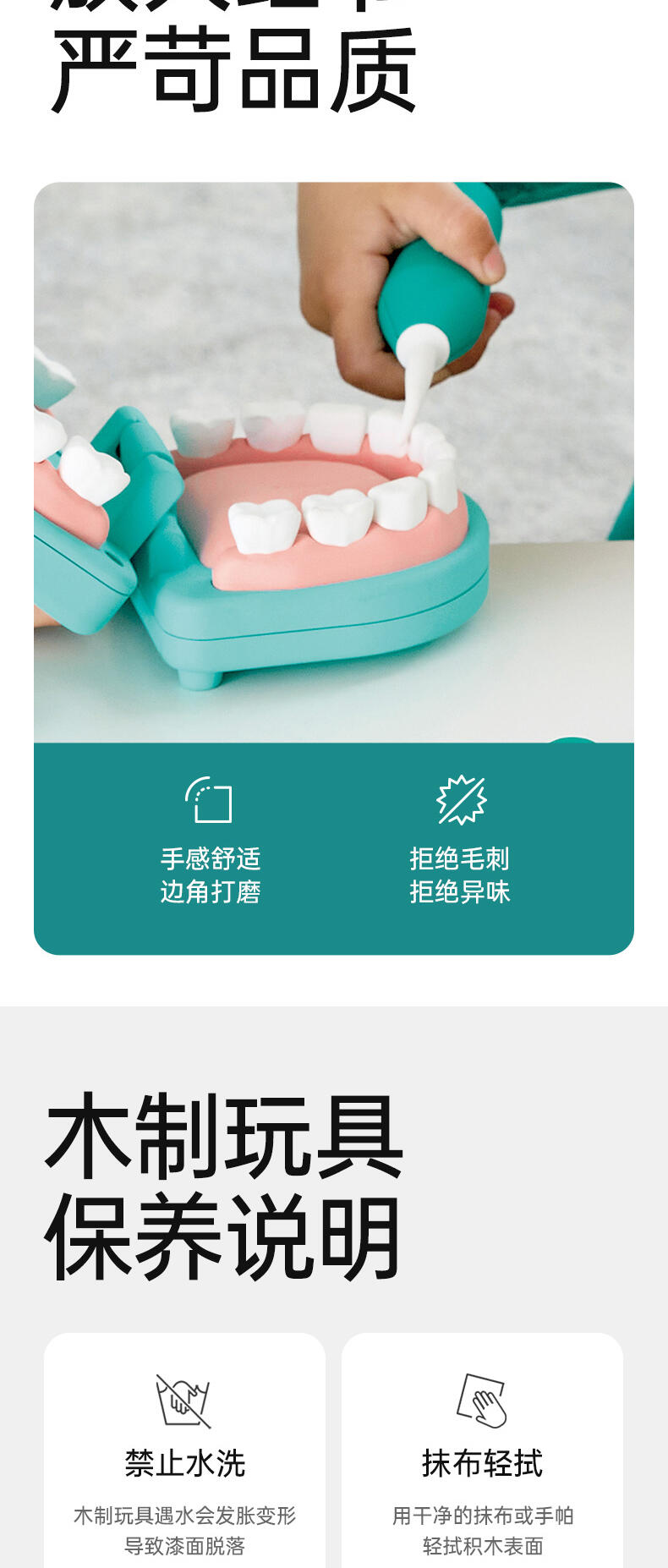 这套微笑牙医诊所套,拥有超还原的仿真工具,同时配备一个便携式诊疗包, 能够让宝贝沉浸式体验牙医治疗蛀牙的全过程,在过家家游戏中提升认知,消除恐惧。
