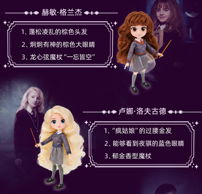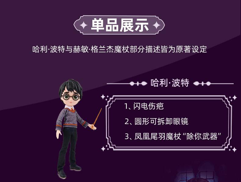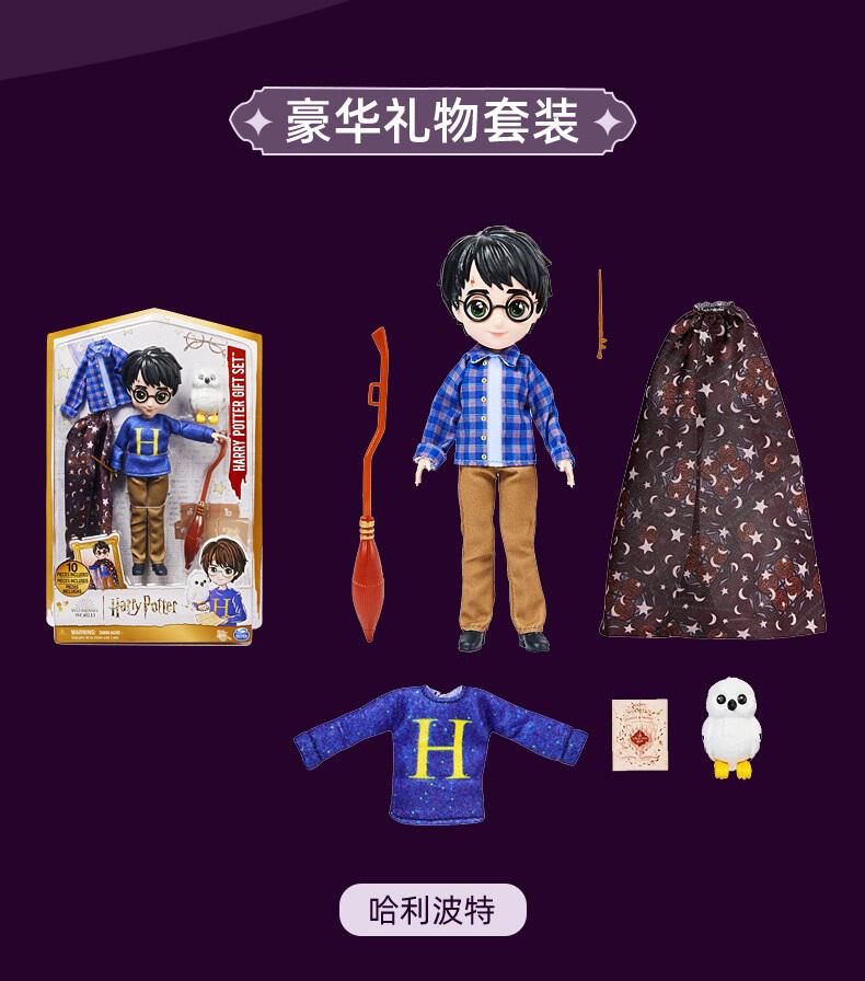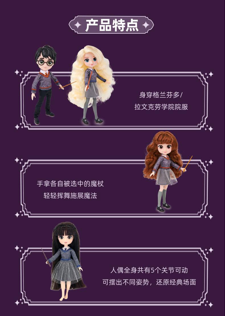人偶身穿各自学院院服,手持魔杖,还原经典造型。全身5个关节可动,可摆出不同姿势,还原经典场面。