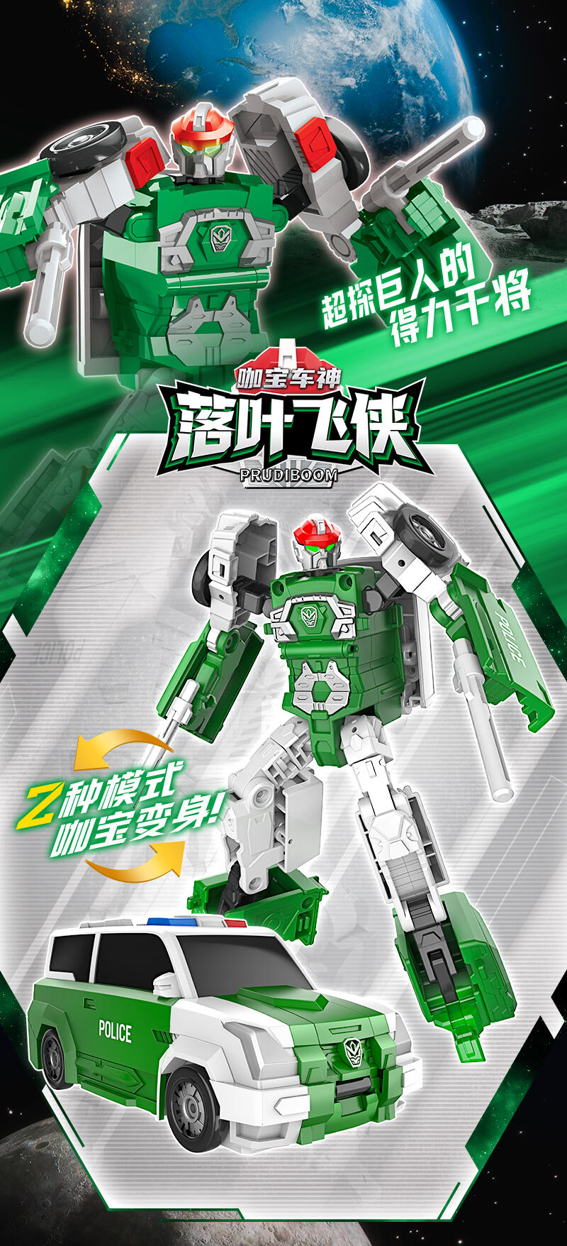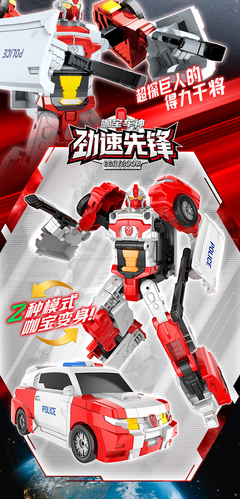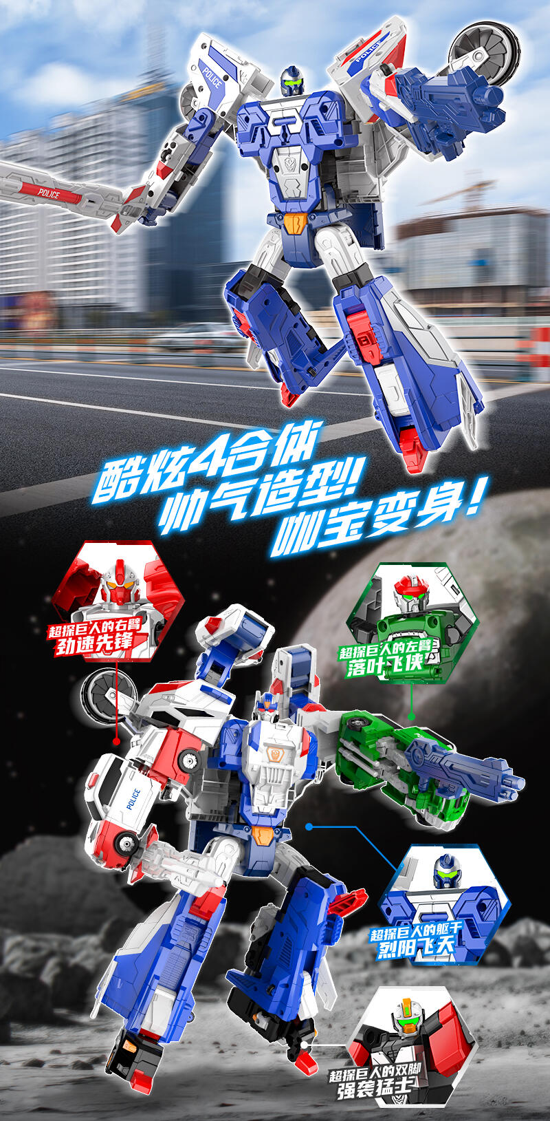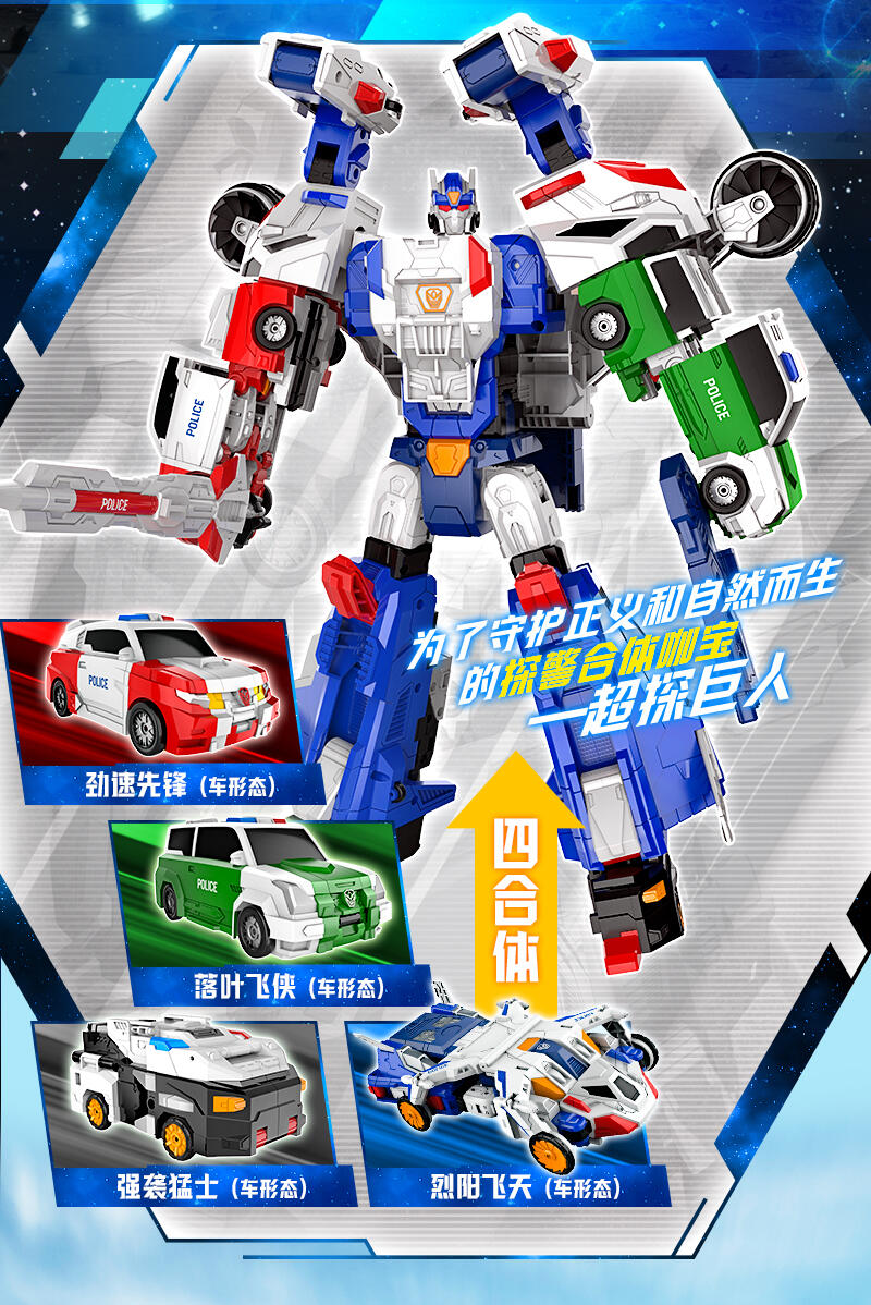未来警察四合体超探巨人的得力干将 车形态跟机器人形态,两种形态,酷炫变形