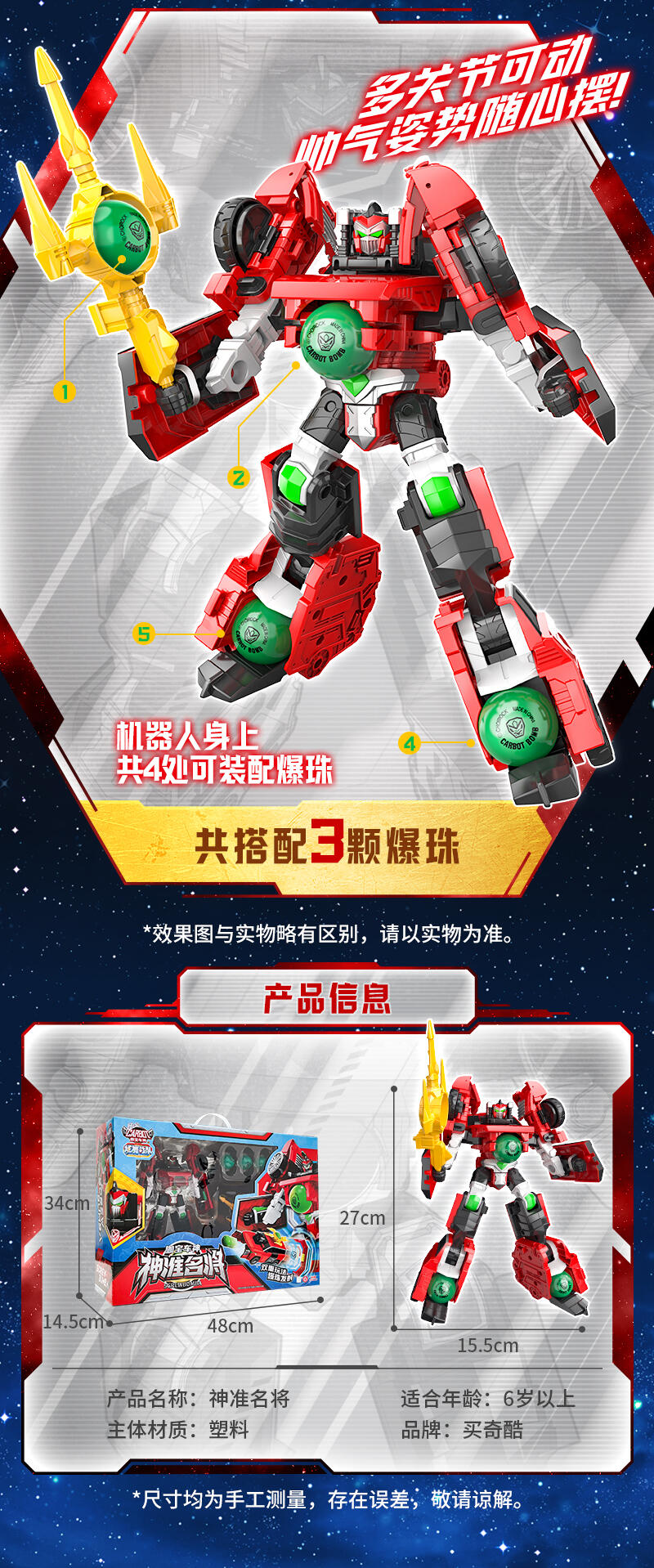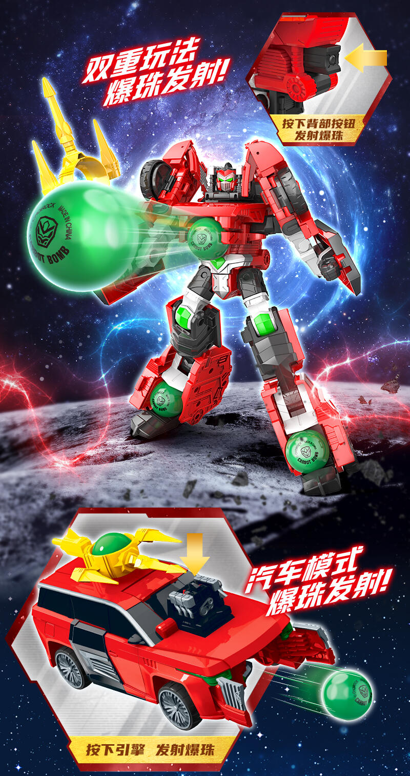 机器人形态:按下背后按钮可发射爆珠,双脚跟武器均可储存爆珠