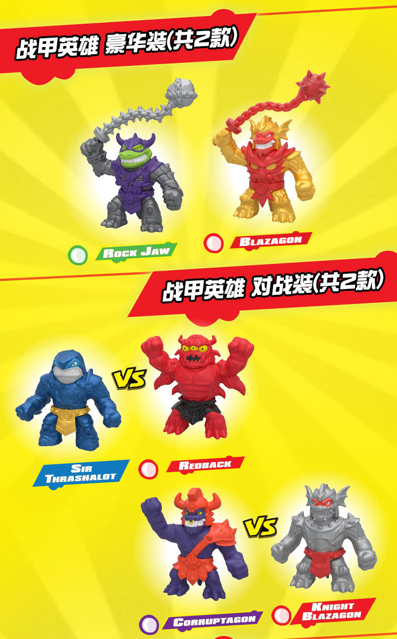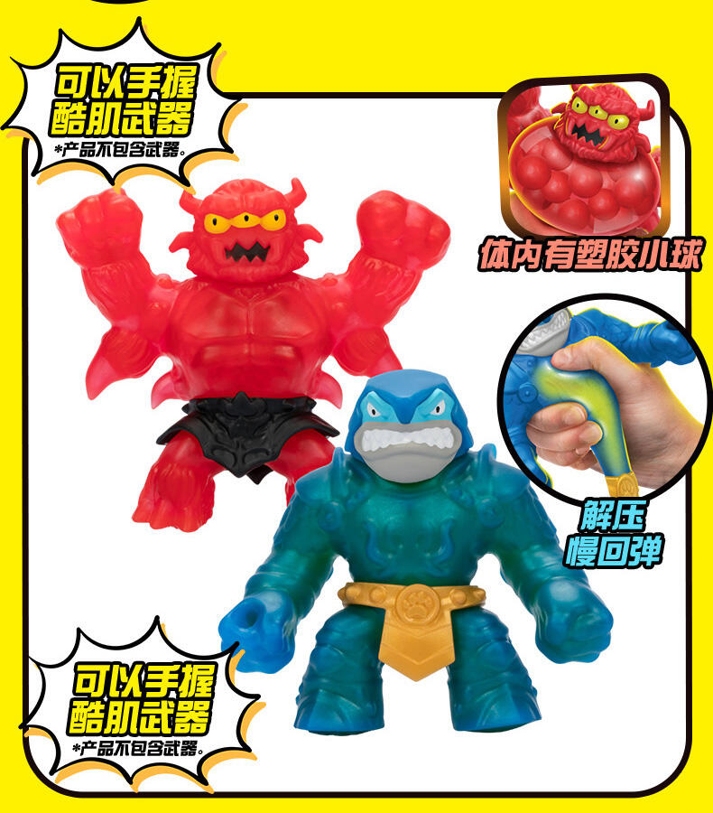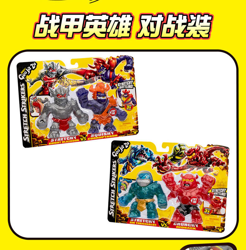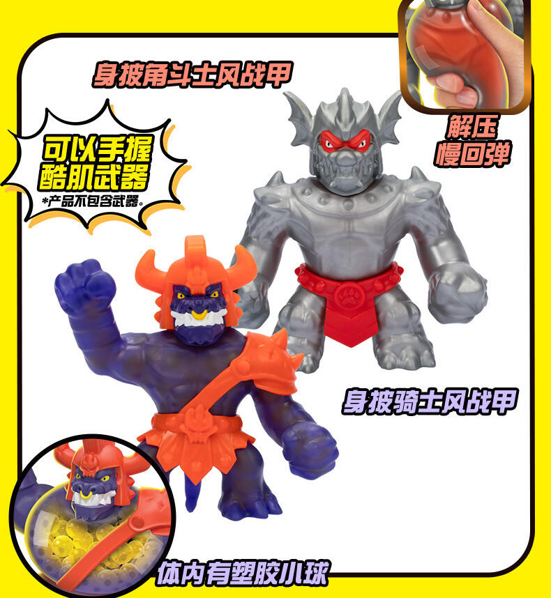 酷肌组 - 战甲英雄 对战装,包含1款独家的战甲英雄款式,还有1款独家的反派款式,两款都有各自特别的填充物料!随意拉伸,最长可以拉伸到原本长度的3倍!