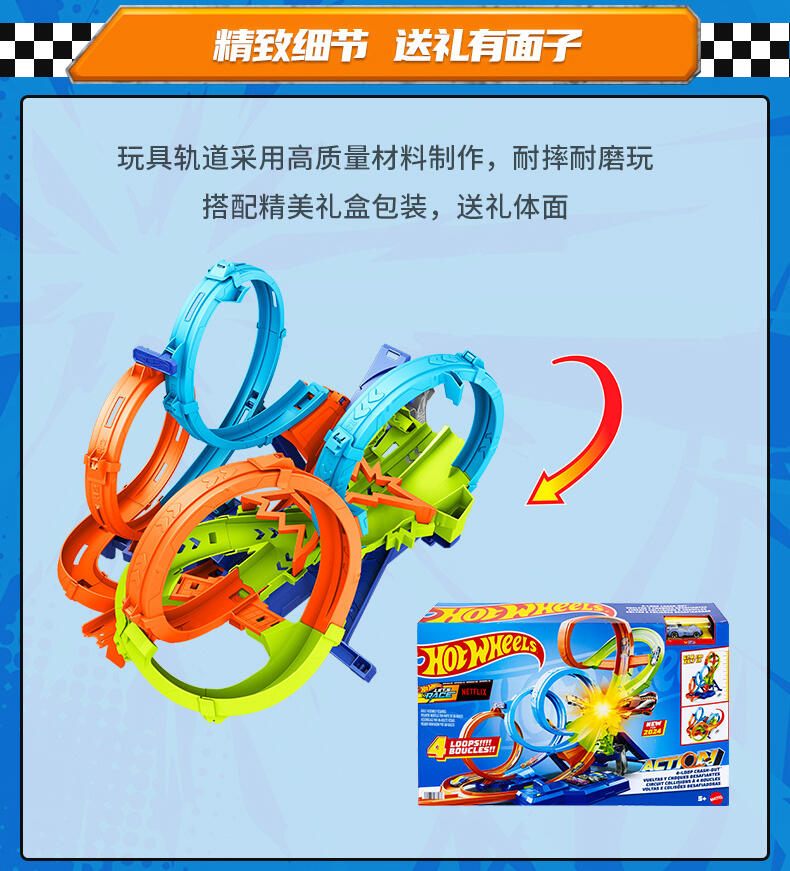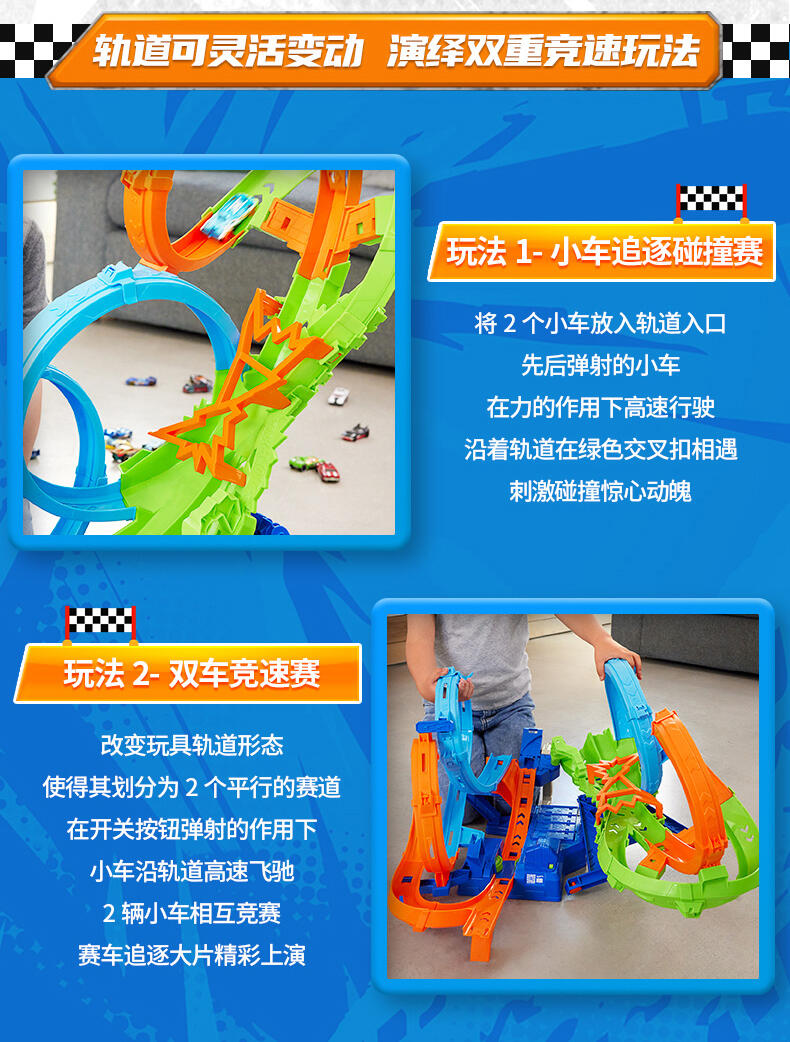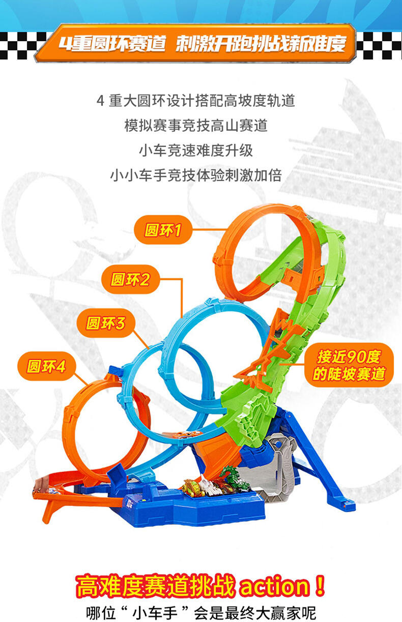 4重大圆环设计搭配高坡度轨道模拟赛事竞技高山赛道,小车竞速难度升级 ,小小车手竞技体验刺激加倍