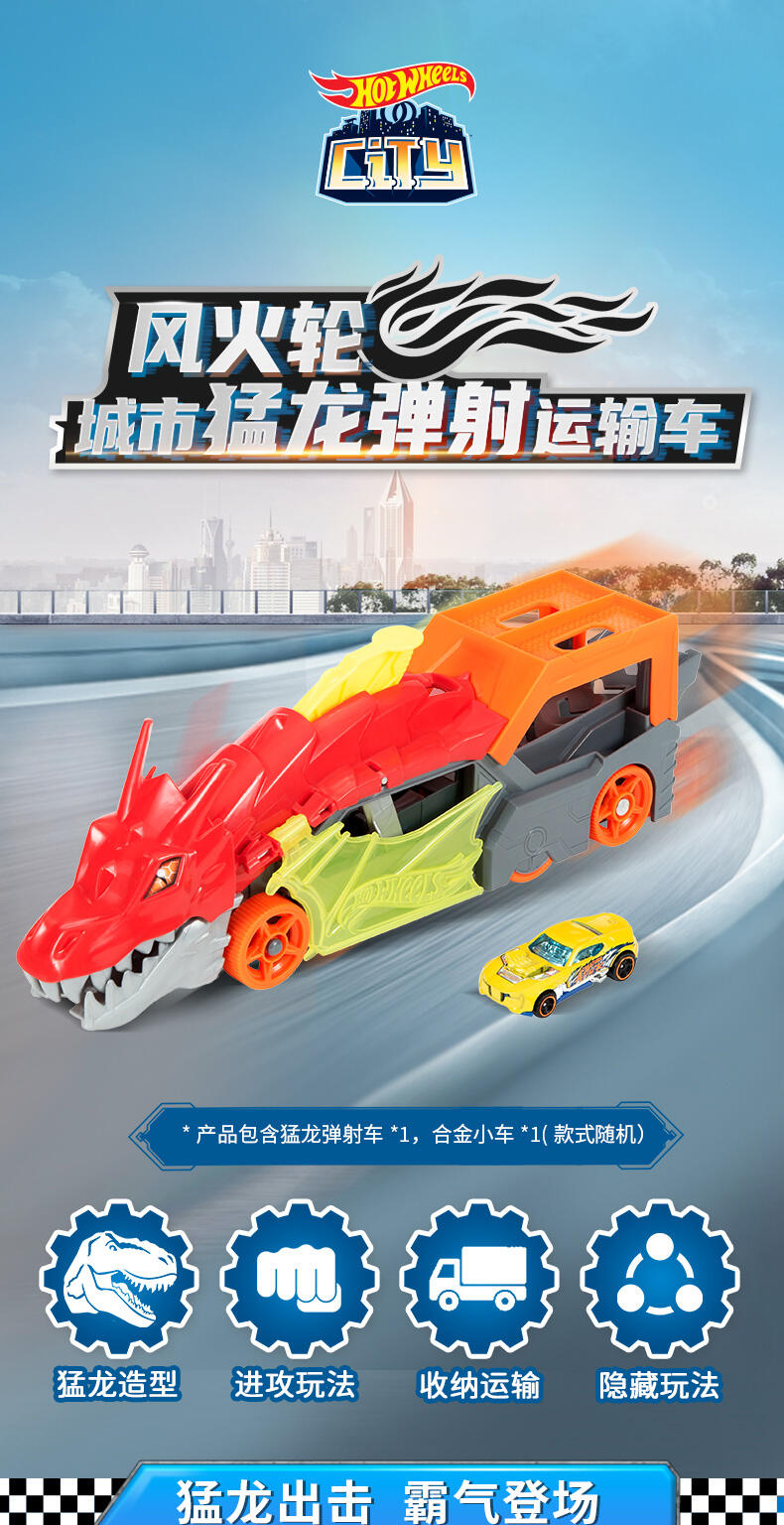 风火轮城市猛龙弹射运输车(内含1辆小车,其他需另购)