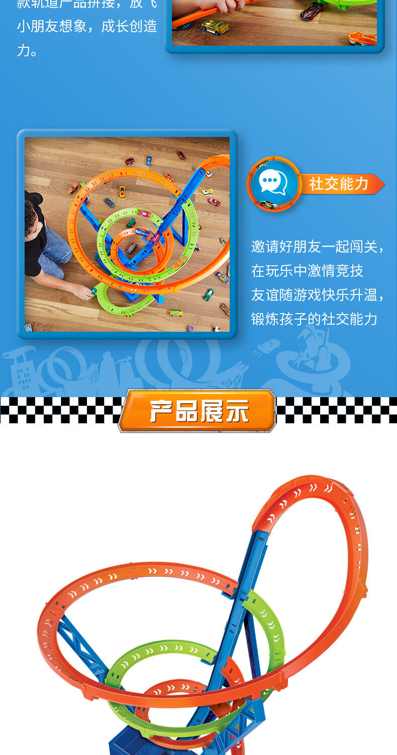 可容纳多辆小车轨道竞速,和好朋友一起玩耍,加速器蓄电能力加强,更持久耐玩!内含一辆风火轮合金小车