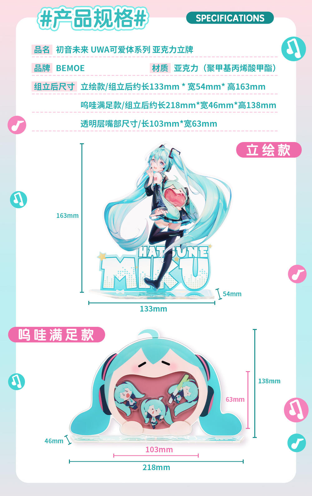 至BEMOE 初音未来 UWA可爱体系列 亚克力立牌 立绘款的链接已被复制
