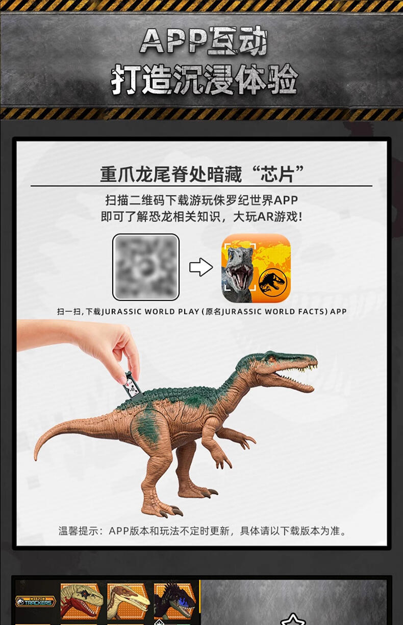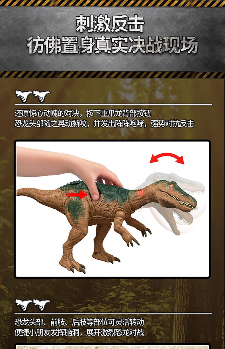 •拥有随战斗状态变化而加剧的灯光和声效 •模拟恐龙受伤出血的样子,并发出阵阵嘶吼 •再现经典的反击玩法,按下背部的按钮,牛力会张开大口,撕咬敌人,并发出阵阵咆哮 •令人记忆深刻的具有攻击性的大型食肉恐龙 •独特的攻击功能,增强了战斗的乐趣
