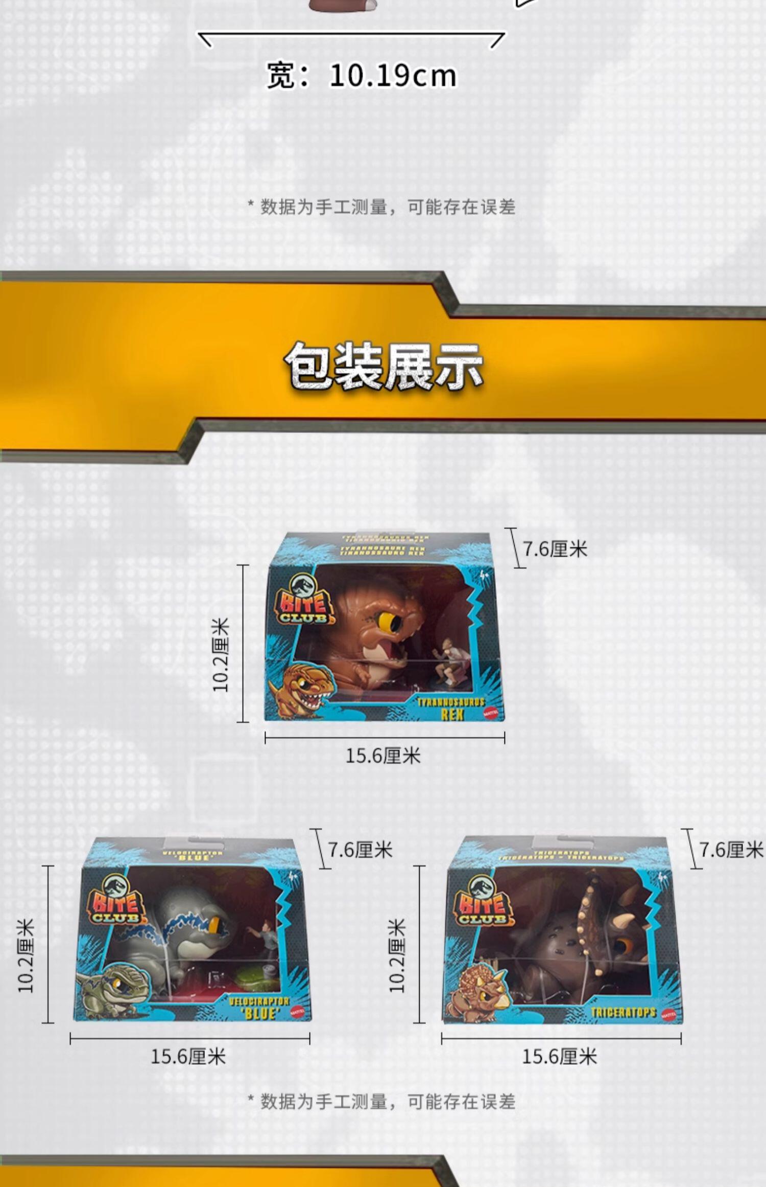 Bite Club 人偶是侏罗纪世界休闲爱好者和恐龙迷的全新组合,每个人偶都配有一个幽默的配饰,捕捉系列中的特定场景 第一波包括最受欢迎的角色和标志性的配饰——blue遇到欧文、霸王龙和倒霉的律师上厕所,以及三角龙和便便。 专为 13 岁以上的儿童收藏家观众设计,这些 4 英寸场景包装在一个用于挂钩或架子的窗盒中,展示其可爱、胖乎乎的魅力 共6款角色(春季3款,秋季3款)