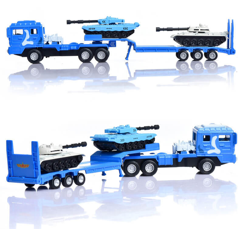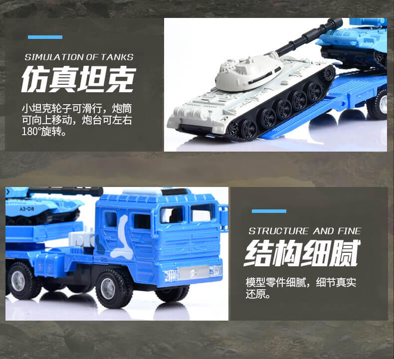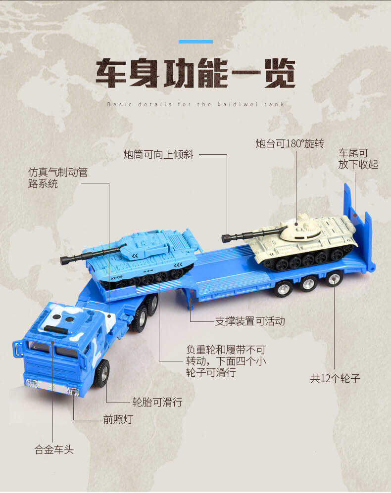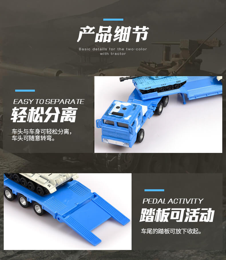 车身与车头连接处是仿真的卡口设计,可以让整车在行驶时,随意转弯;车头不动,车身向左边90度旋转即可分离,让这个合金运输车增加几分乐趣,无论是给孩子做玩具,还是收藏观赏都是不错的!