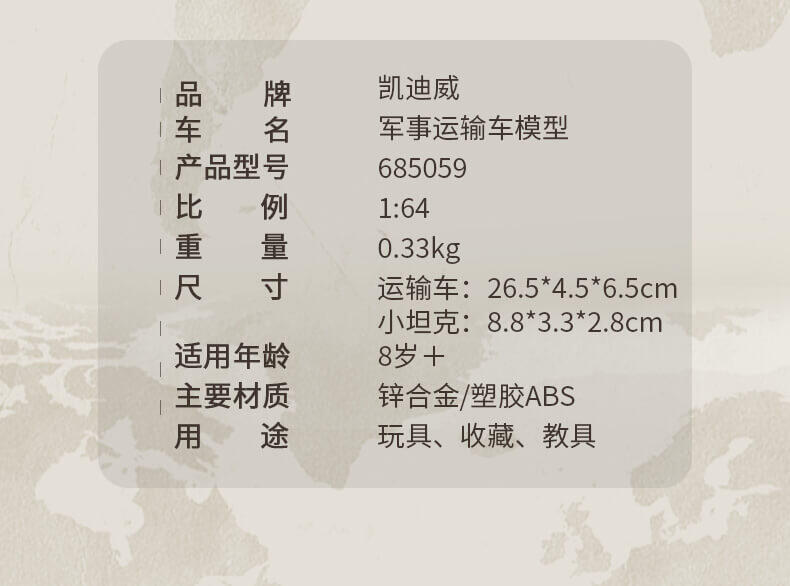 凯迪威合金车,激发新一代的创造力。广东凯迪威文化股份有限公司主要经营玩具产品等。公司立足于工程系列、军事系列等合金车的研发、生产、销售,融合传统与现代,继承不断开阔新视野,扩大新领域,迈上新台阶。