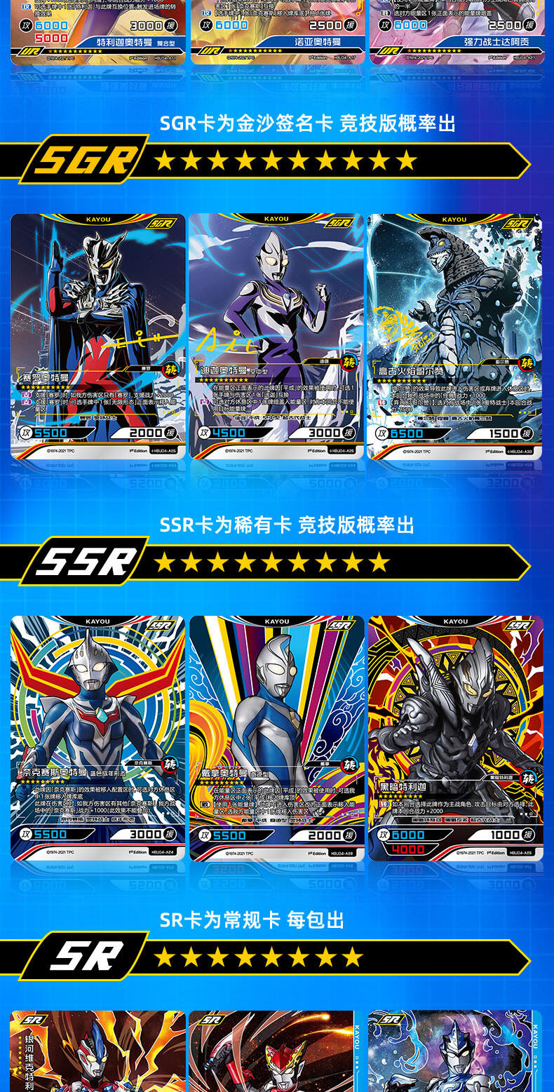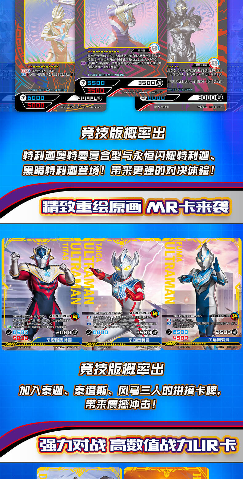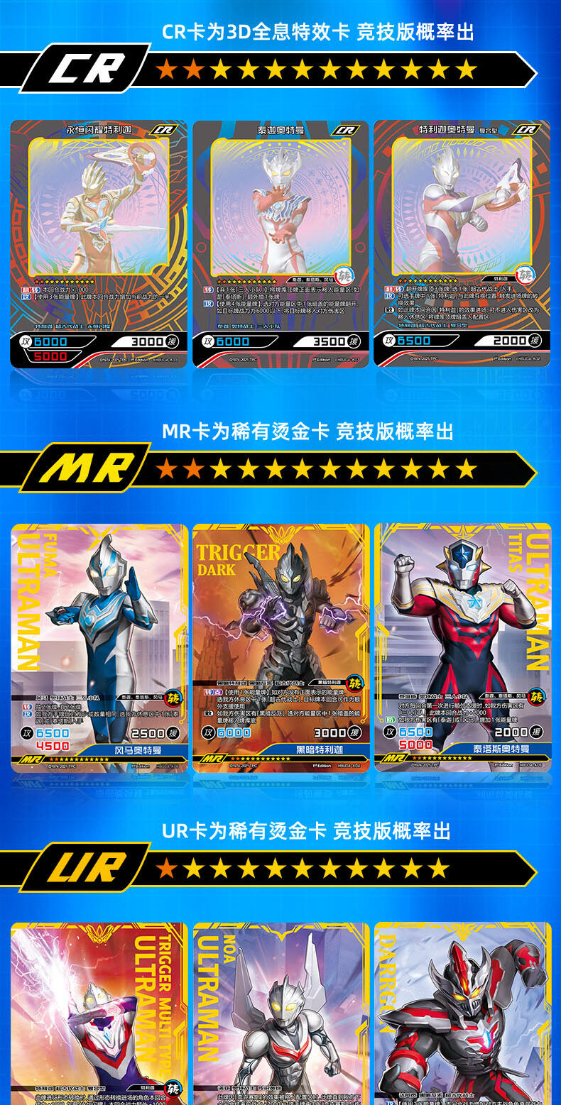 CR稀有度卡牌之外,更有泰迦奥特曼三人小队拼接MR卡、迪迦与特利迦的双