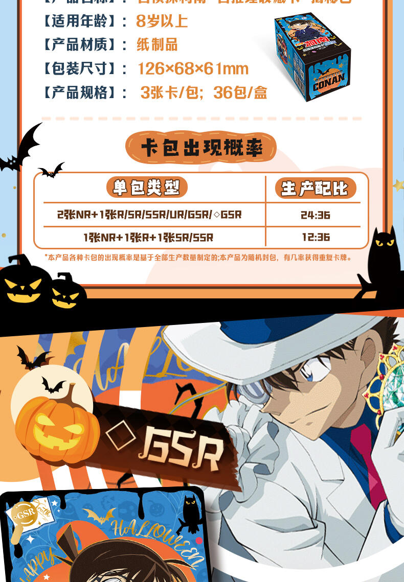 每包含3张卡牌,每盒36包卡