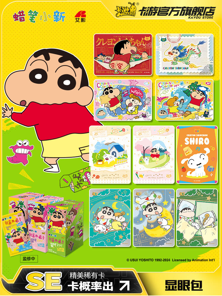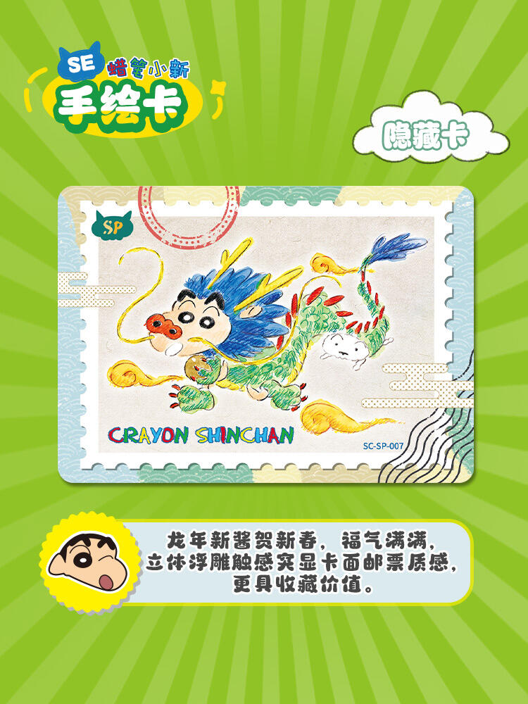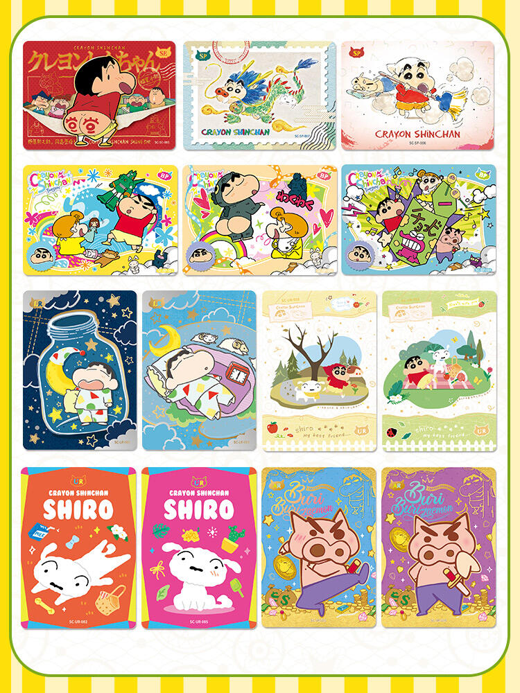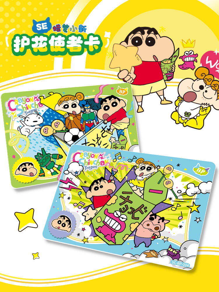 (蜡笔小新显眼包)单包尺寸:68*4*125mm;重:20g/包 ;每小包包含5张卡牌,卡牌采用烫金工艺,亮泽收藏,添加精美钻闪,立体浮雕工艺体现立体触感,价值感趣味性双重加倍