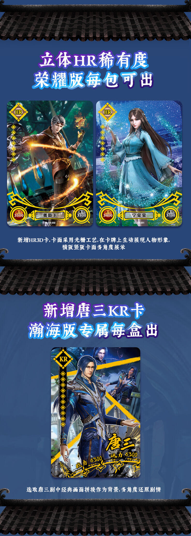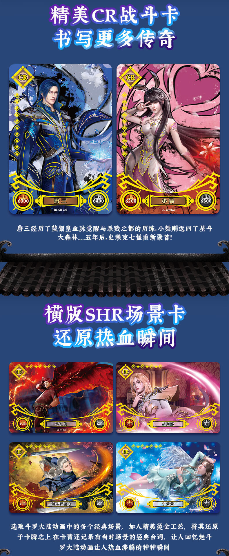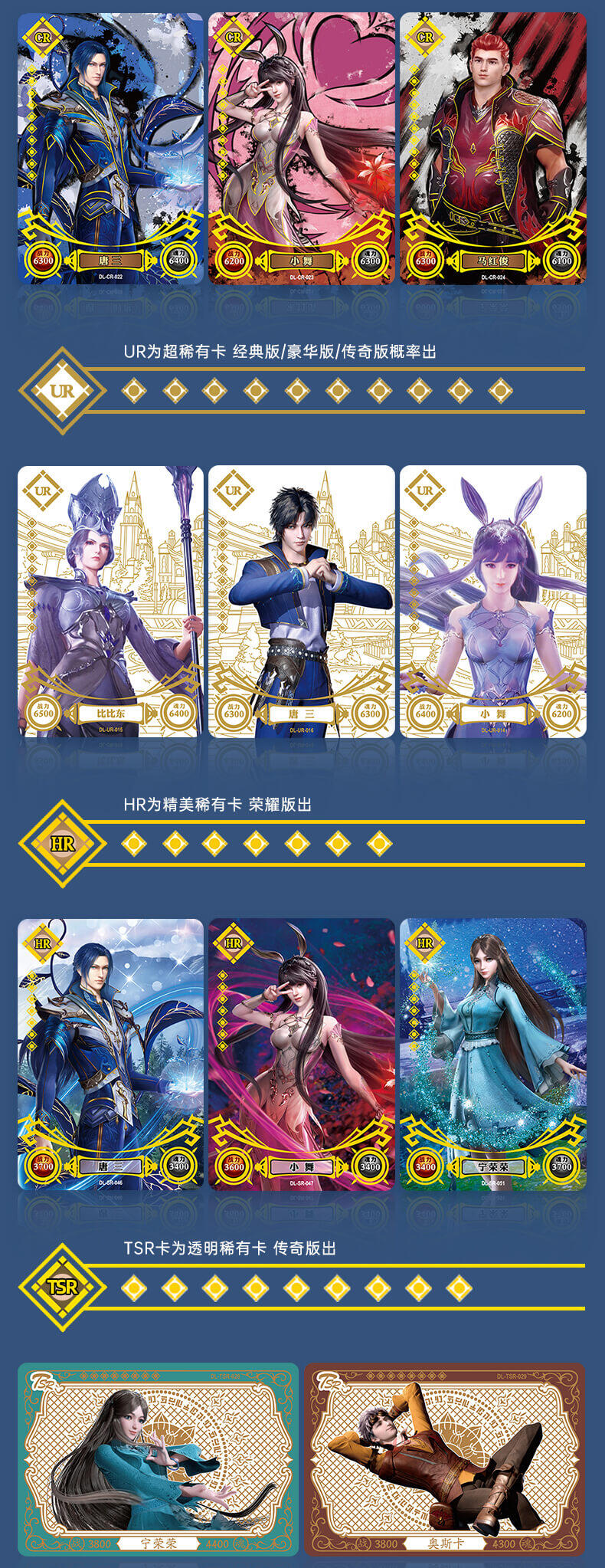 斗罗大陆动画武魂收藏令是播放量超过200亿的热门动画《斗罗大陆》的卡牌产品,在这款“武魂收藏令”中,除了以唐三、小舞、戴沐白为首的史莱克七怪之外,还加入了黄金铁三角、力之一族、武魂殿、各大学院、魂兽等各势力的众多角色,搭配卡面的精细工艺,再现斗罗大陆武魂觉醒的精彩。