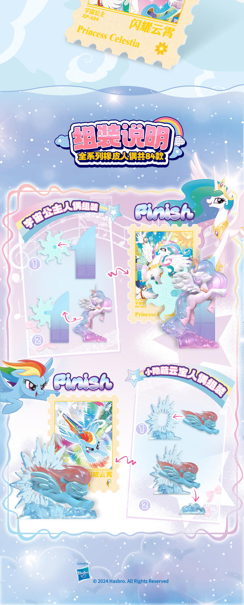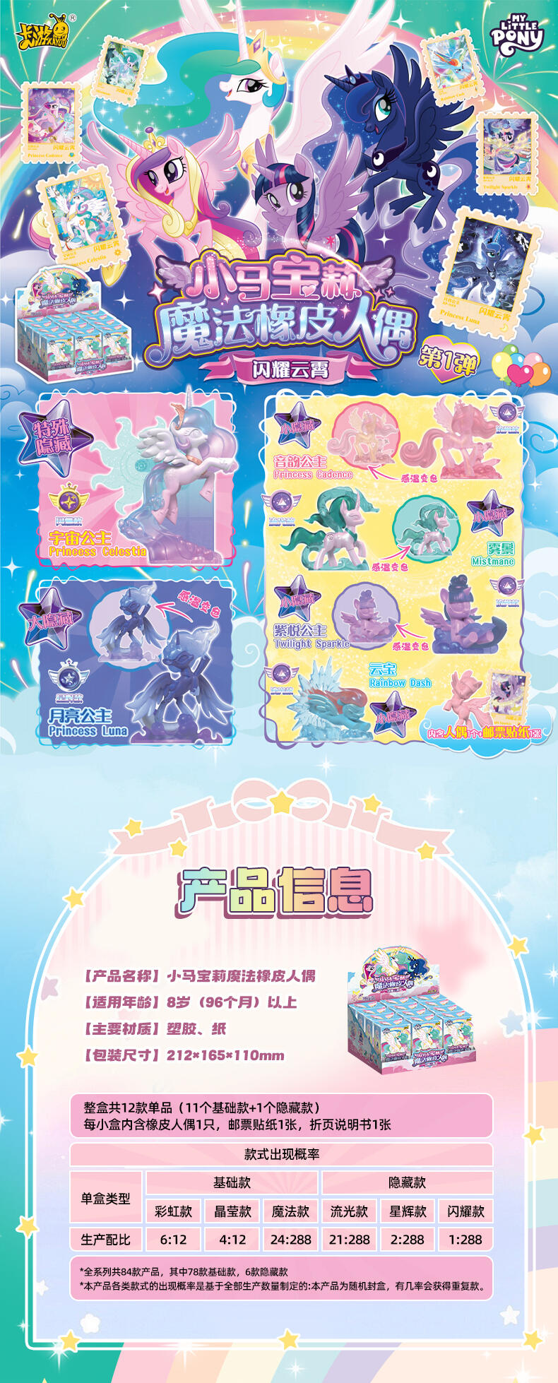 该产品含橡皮人偶1只,邮票贴纸1张,折页说明书1张,全24个角色,84款