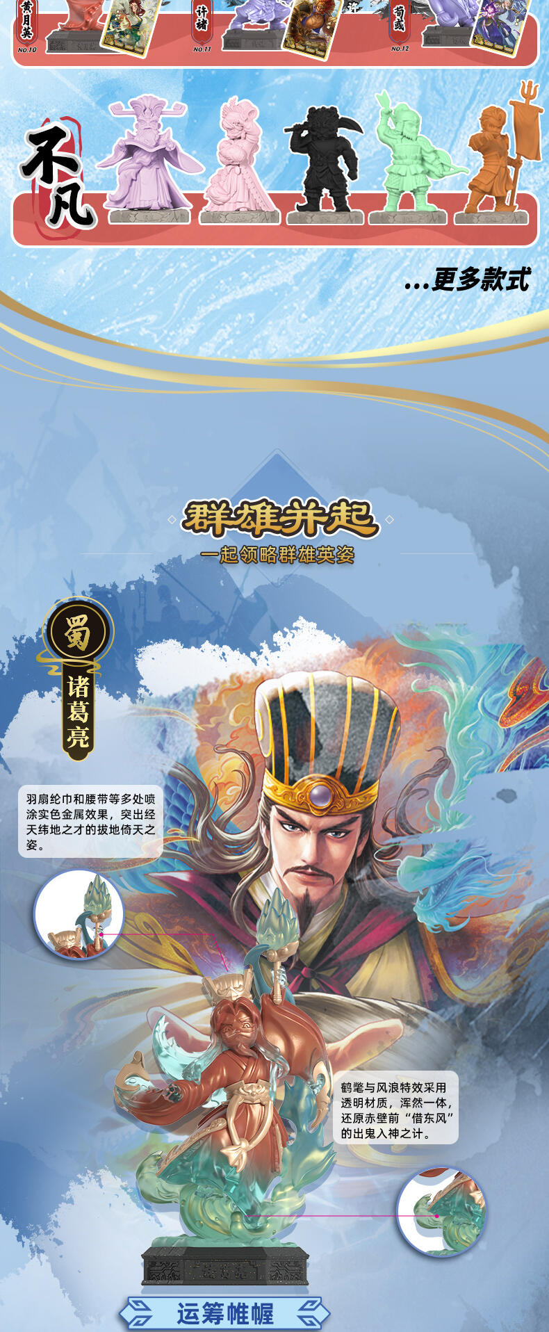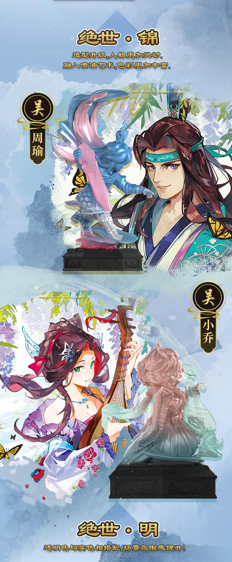 人偶具有橡皮擦功能,运用实色、珠光、闪粉、喷油等多种工艺,盲盒包装,有概率抽中隐藏款,每个角色都配有经典收藏卡,单个角色有多种造型款式,配备专属底座,可随意拼接呈现对战或者阵营效果