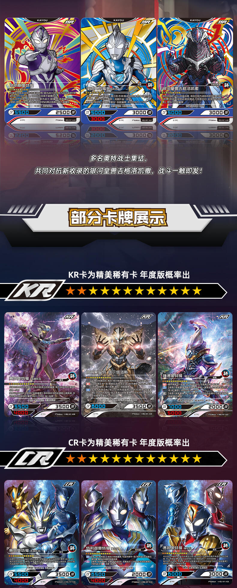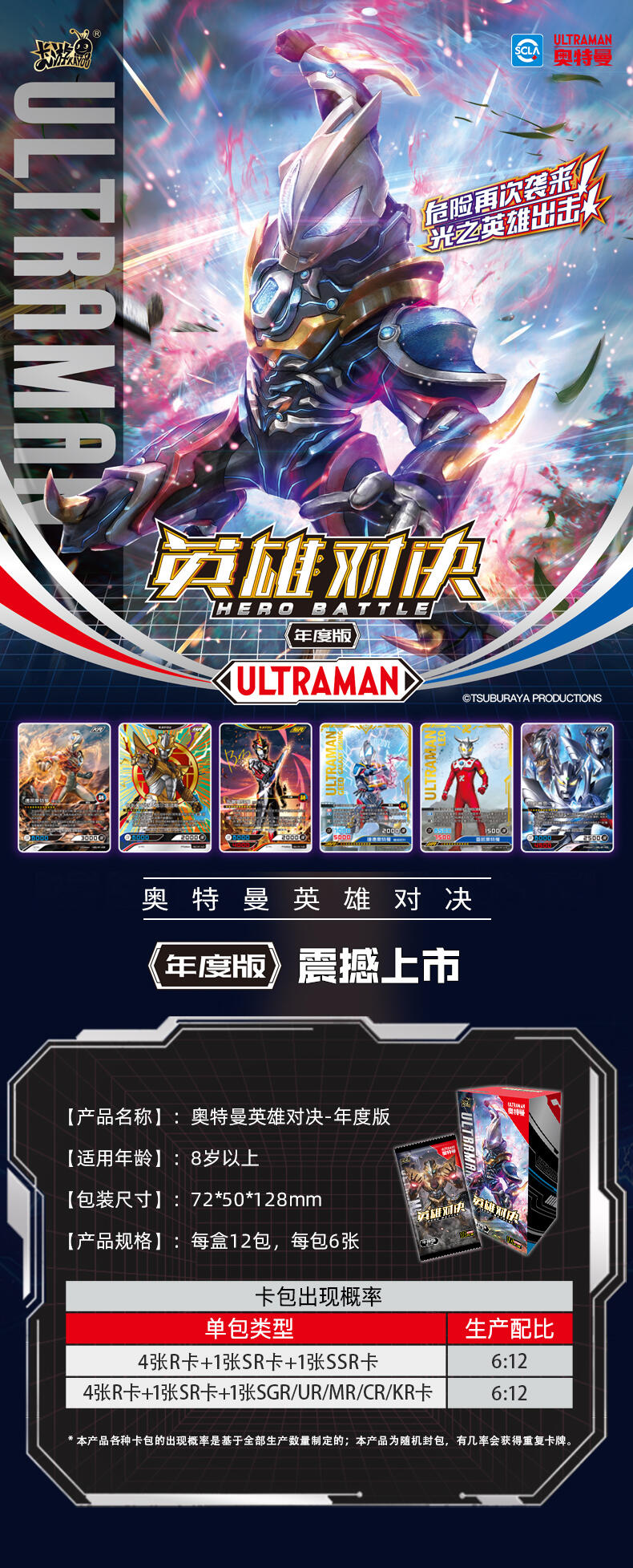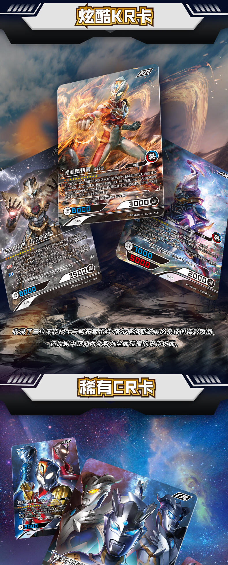 在本次年度版产品中,收录了一直以来备受好评的赛罗奥特曼的最新卡牌。与此同时,赛罗奥特曼的全新强劲对手——究极生命体阿布索留特 人的战士,阿布索留特·塔尔塔洛斯、阿布索留特·泰坦和阿布索留特·迪亚波罗也同样出现在了这里,两方剑拔弩张,史诗的光暗碰撞一触即发!