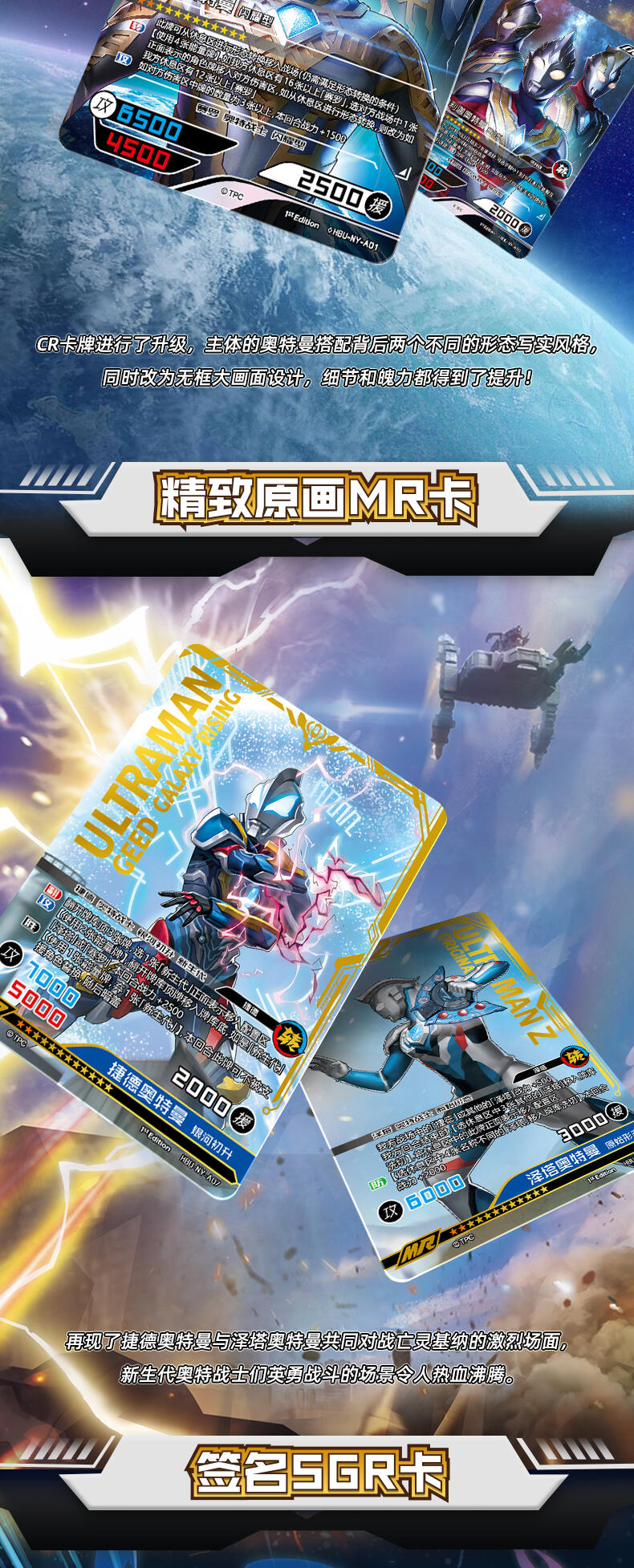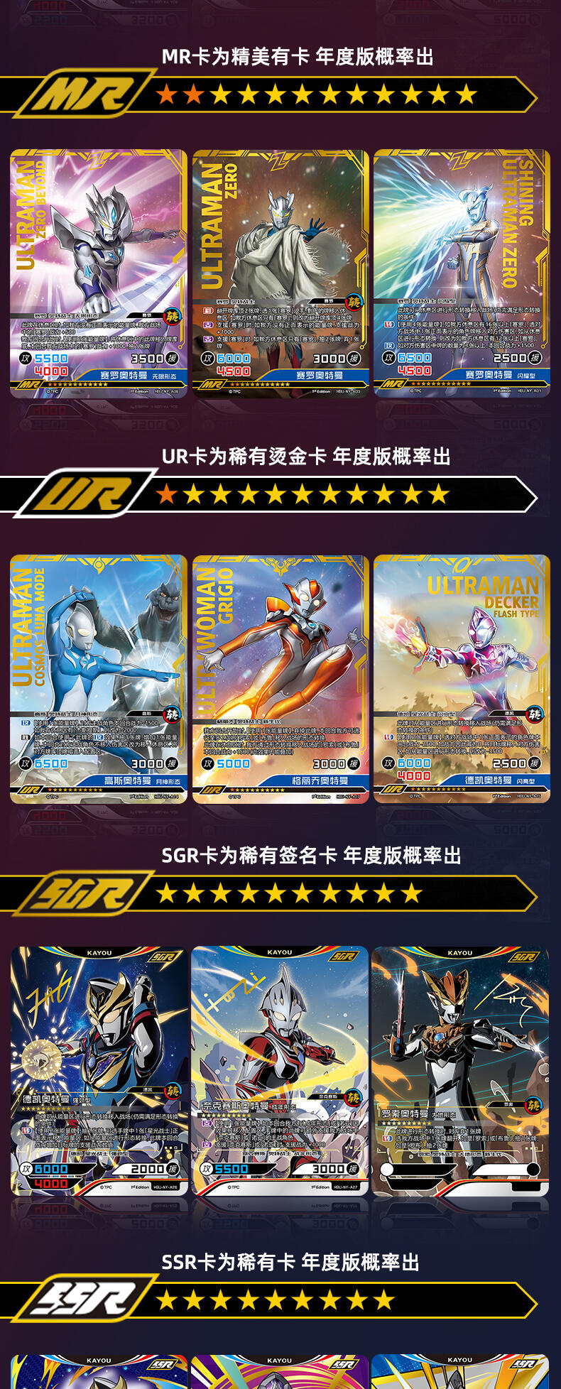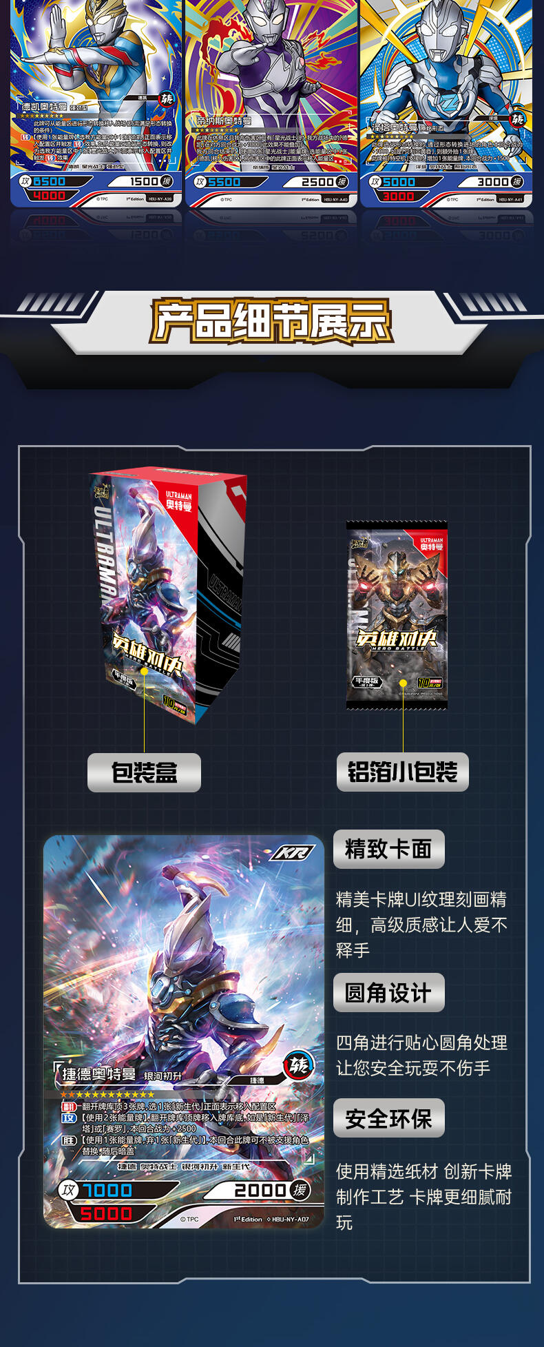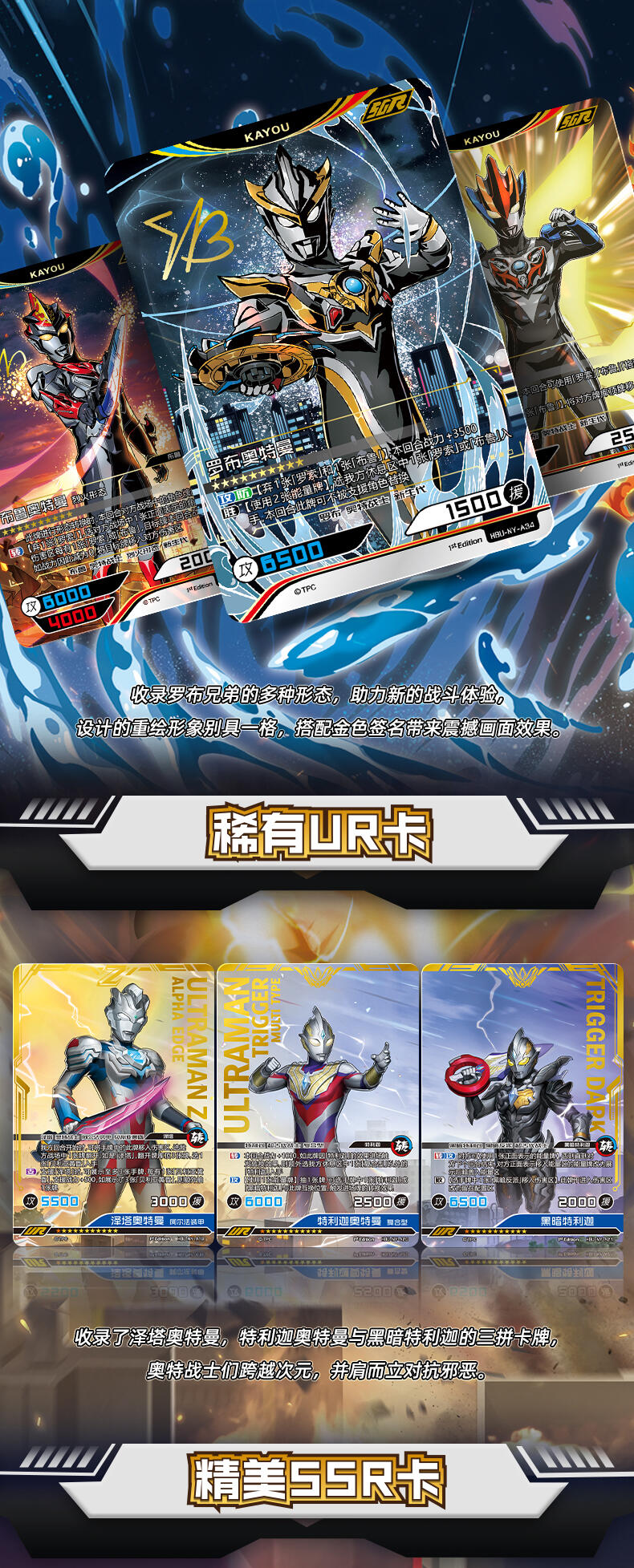 在本次年度版产品中,收录了一直以来备受好评的赛罗奥特曼的最新卡牌。与此同时,赛罗奥特曼的全新强劲对手——究极生命体阿布索留特 人的战士,阿布索留特·塔尔塔洛斯、阿布索留特·泰坦和阿布索留特·迪亚波罗也同样出现在了这里,两方剑拔弩张,史诗的光暗碰撞一触即发!