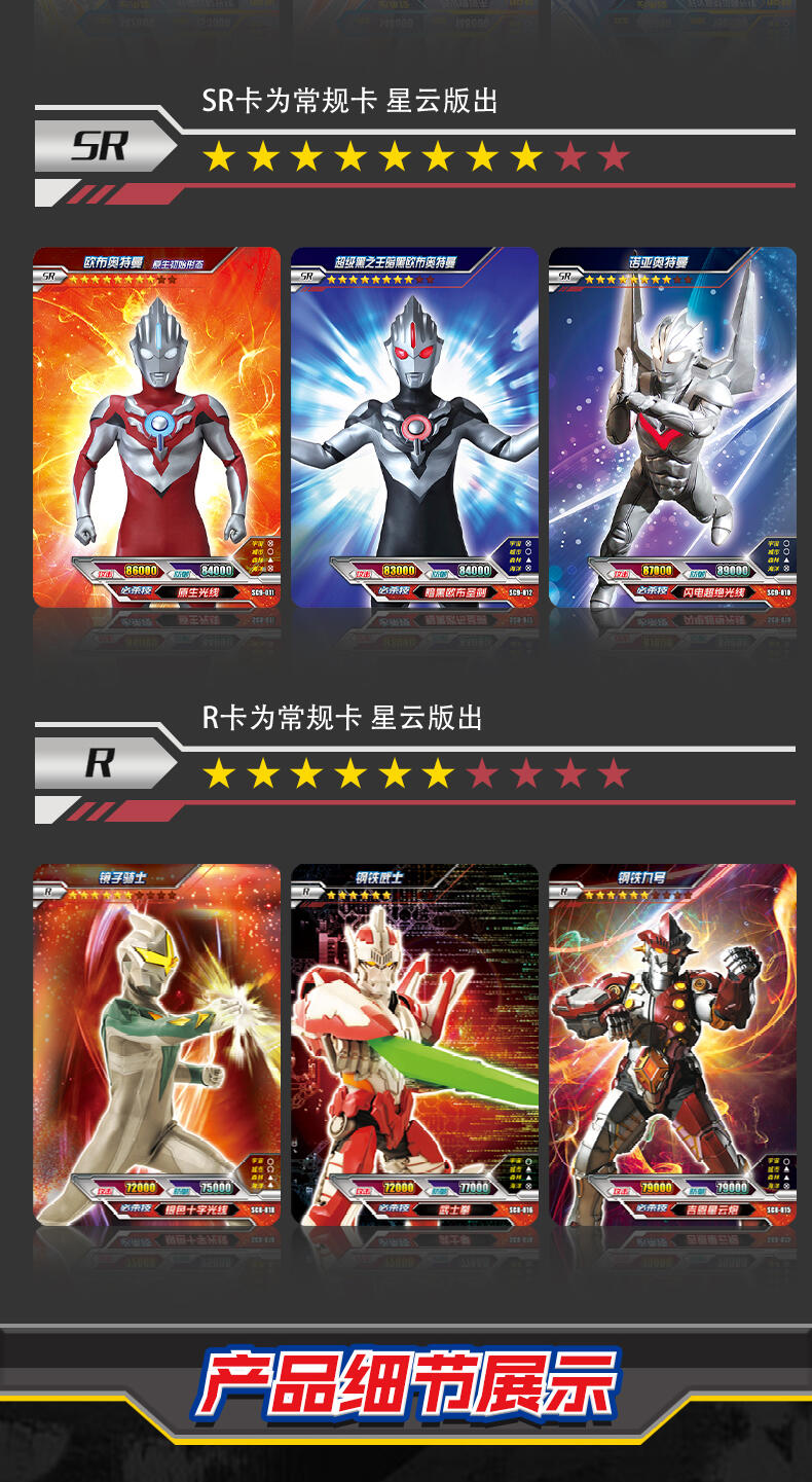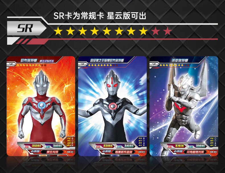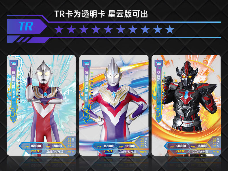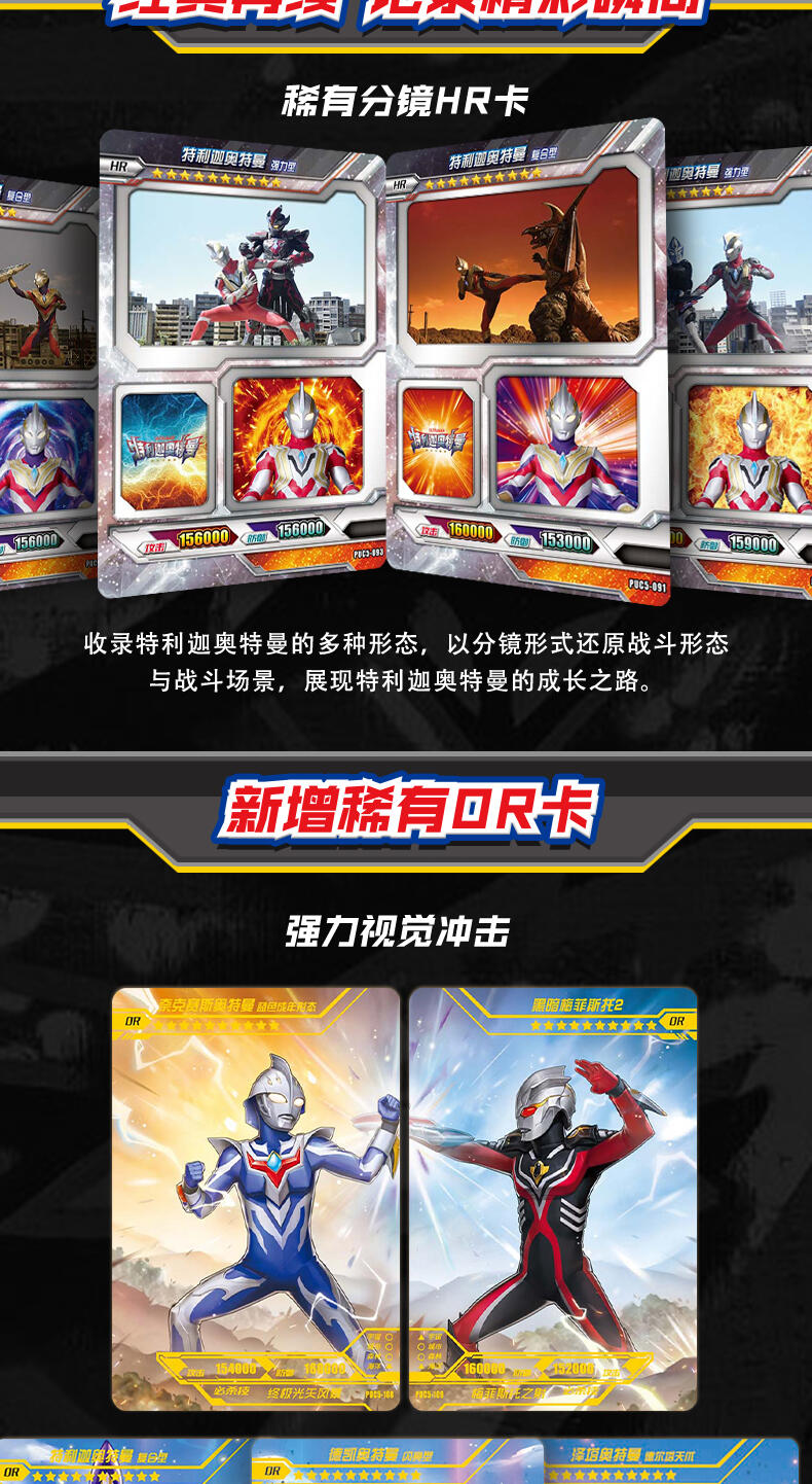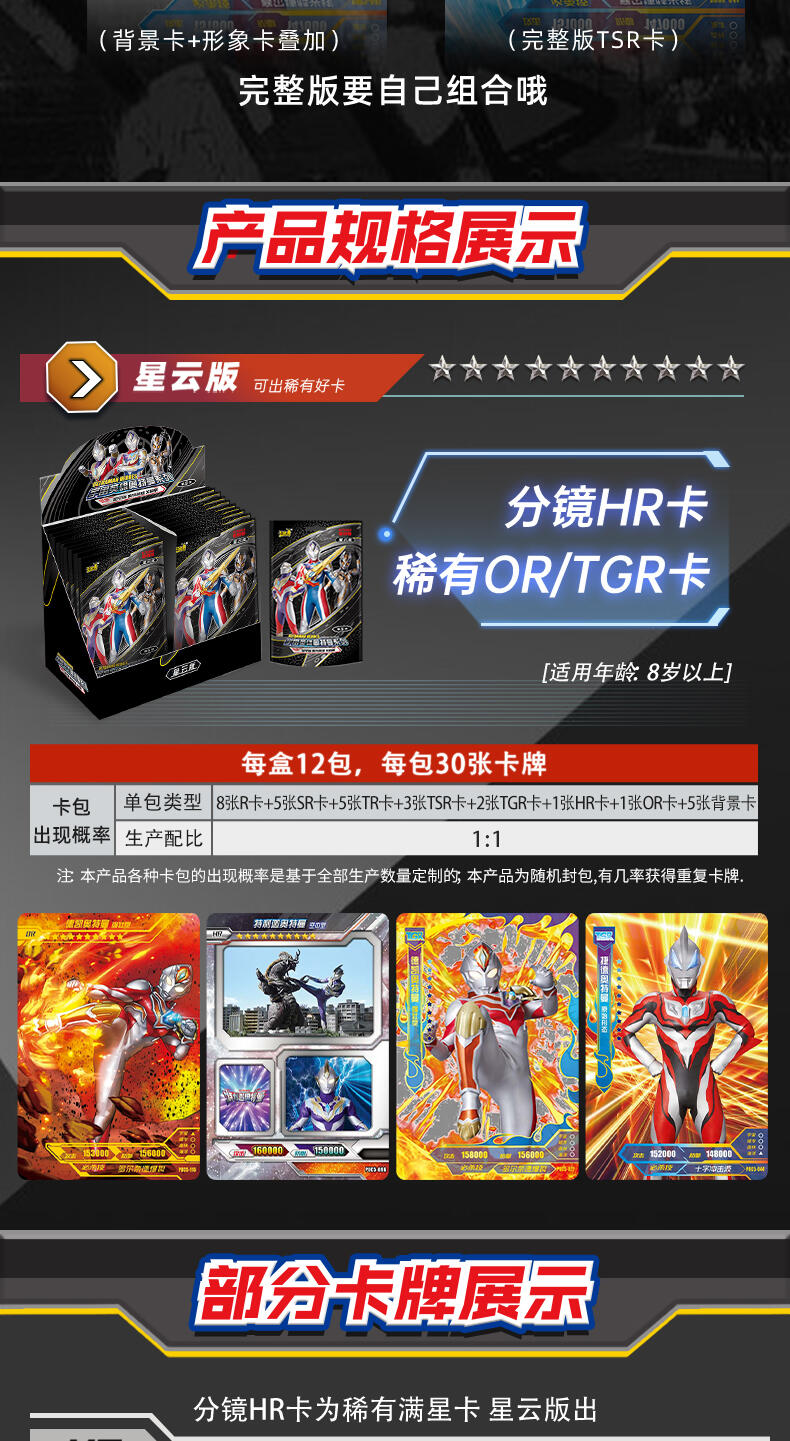 超宇宙奥特英雄X档案星云版第3弹每包含有30张卡牌,不仅收录了星辰版的全新稀有度TR卡、TGR卡、TSR卡以及热门稀有度OR卡,还增加了还原经典场景的分镜HR卡.