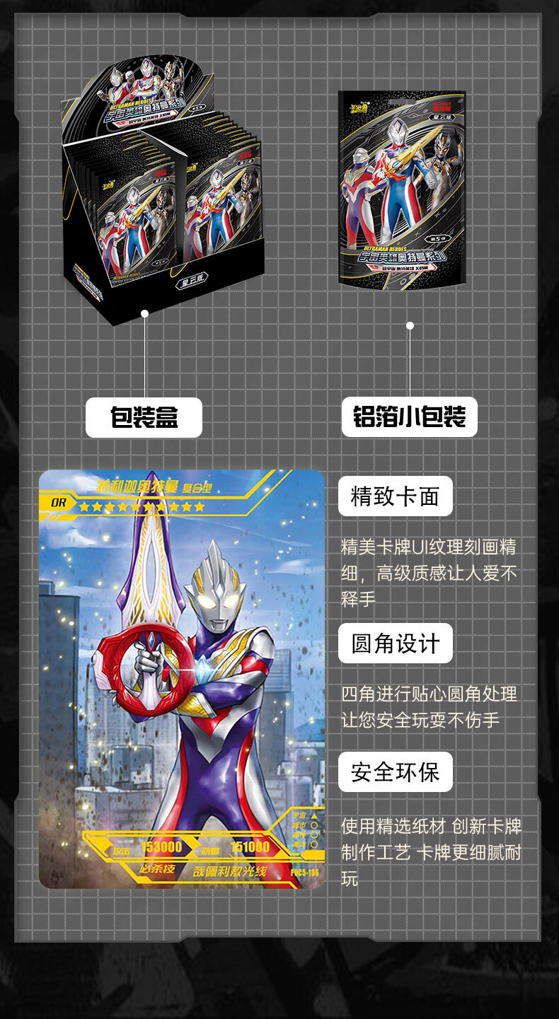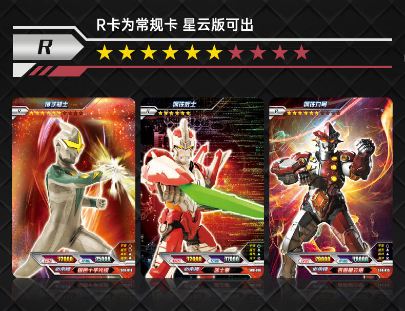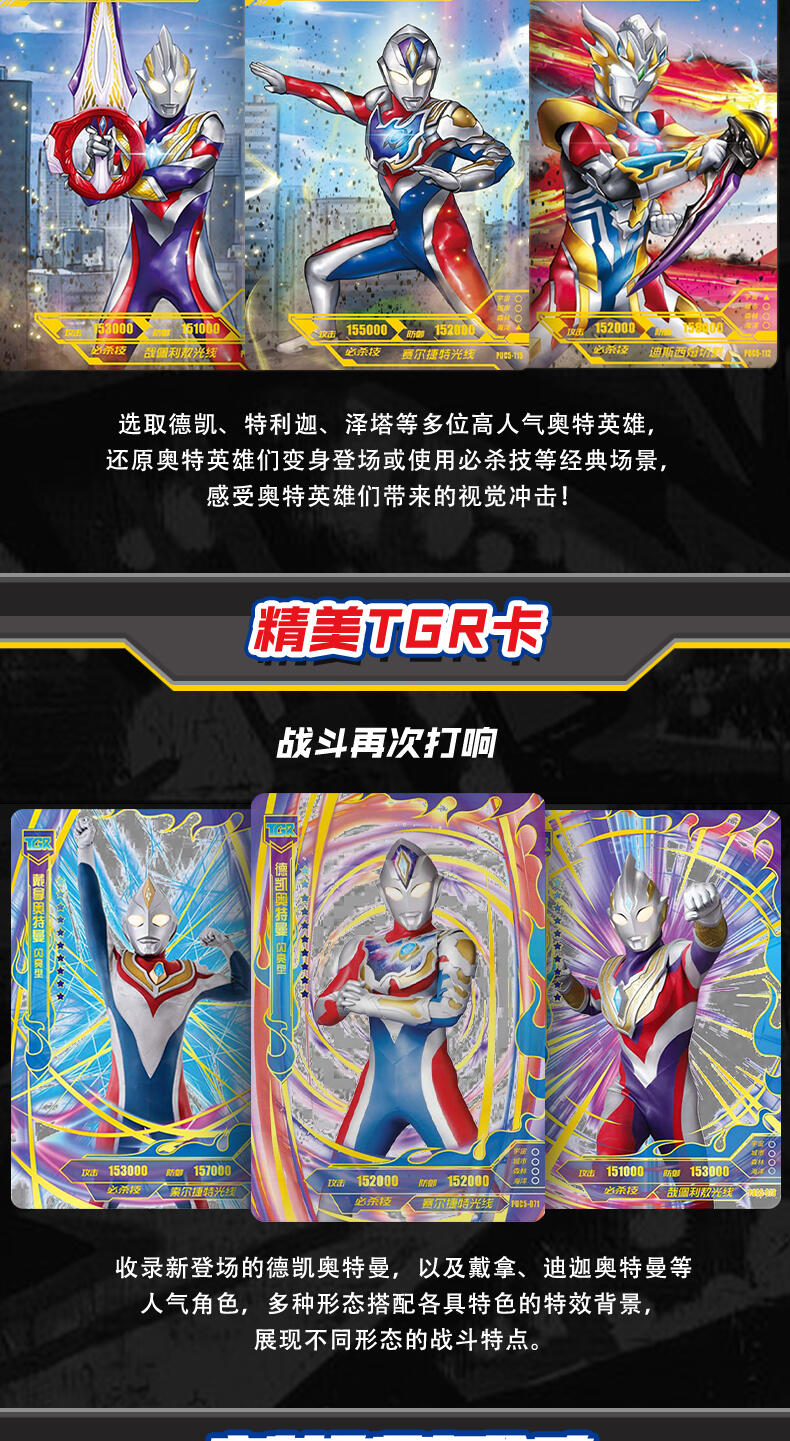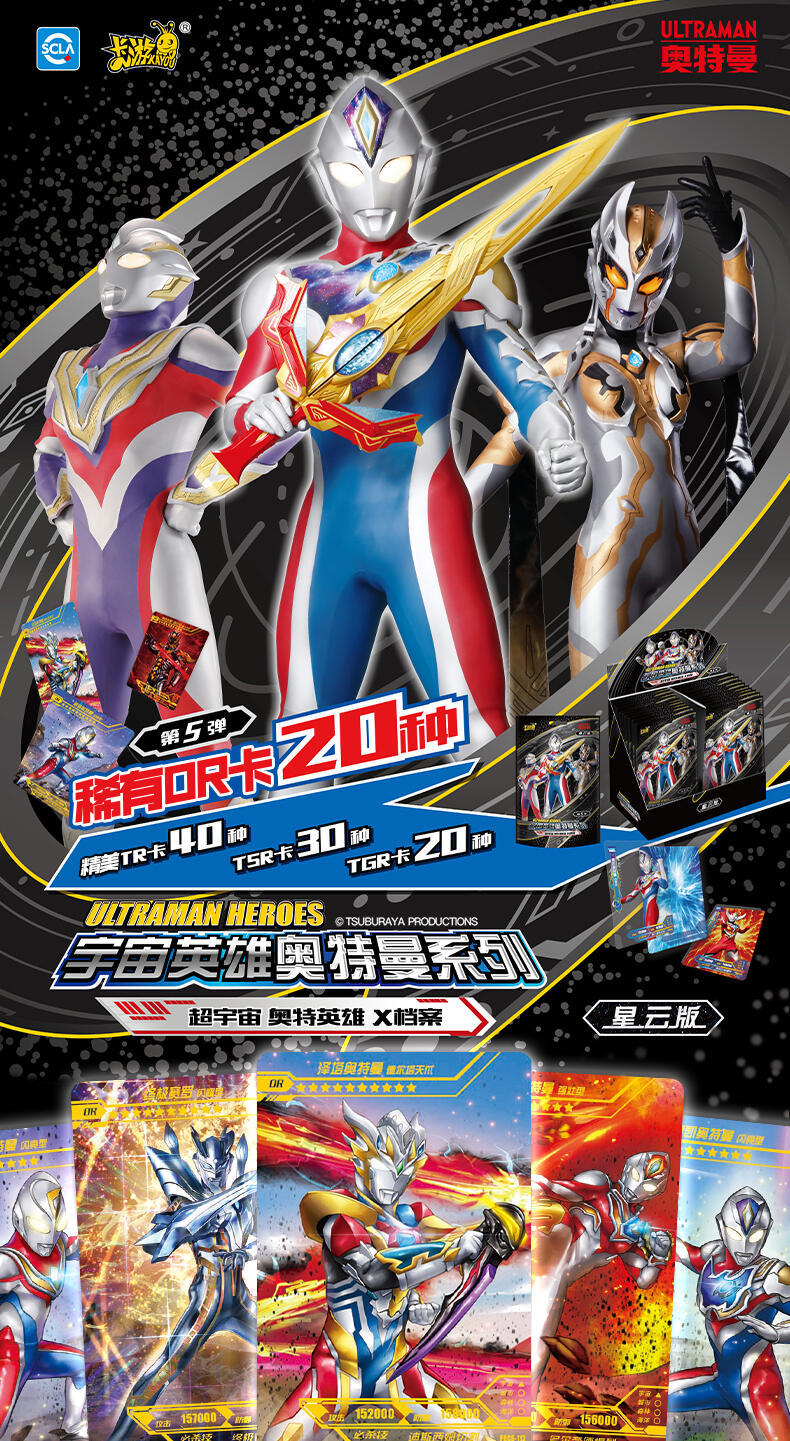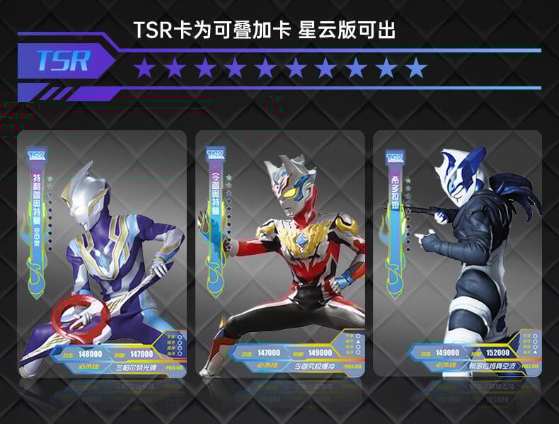 超宇宙奥特英雄X档案星云版第3弹每包含有30张卡牌,不仅收录了星辰版的全新稀有度TR卡、TGR卡、TSR卡以及热门稀有度OR卡,还增加了还原经典场景的分镜HR卡.