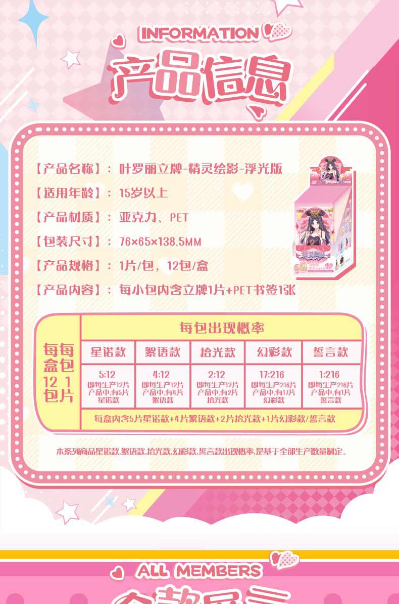每小包含1片亚克力立牌,1张对应PET书签+2张纸卡