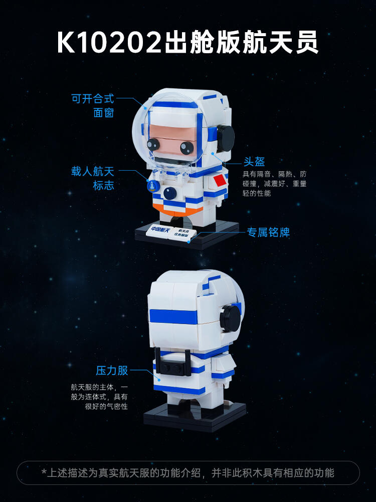 1.电镀工艺,金属质感,面罩可动,内置航天员表情;