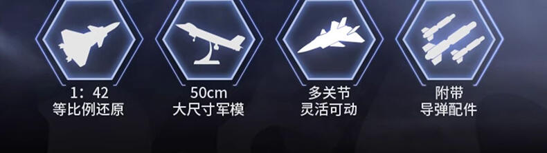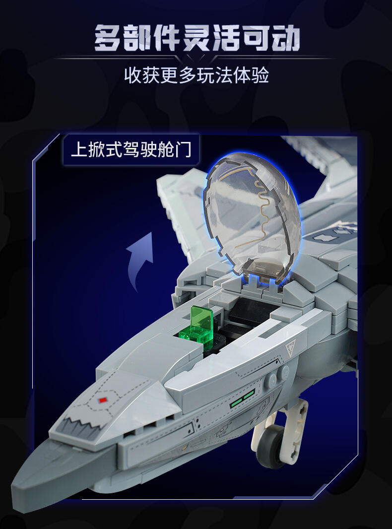 1、在还原细节的同时,降低拼搭难度更适配6岁+男孩子 2、近50cm大尺寸,1:42比例还原 3、模拟飞行,乐趣无穷,可收纳式起落架,配备多个导弹,上掀式驾驶舱门,精致机舱内饰