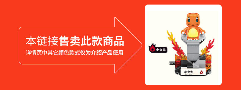 收集小火龙,成为优秀训练家。内含60块积木,兼容乐高。 色彩亮丽,边缘光滑,易于拼砌。