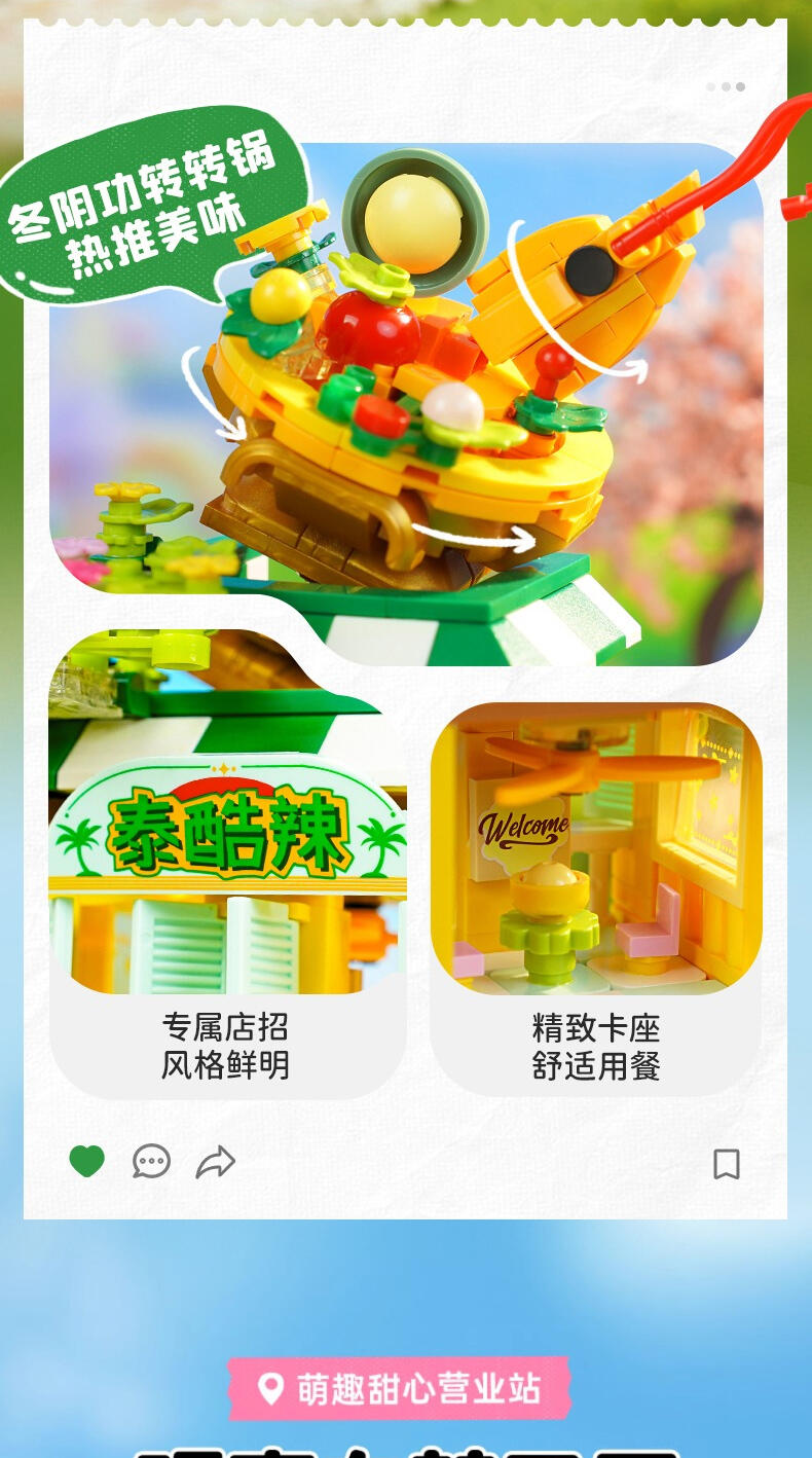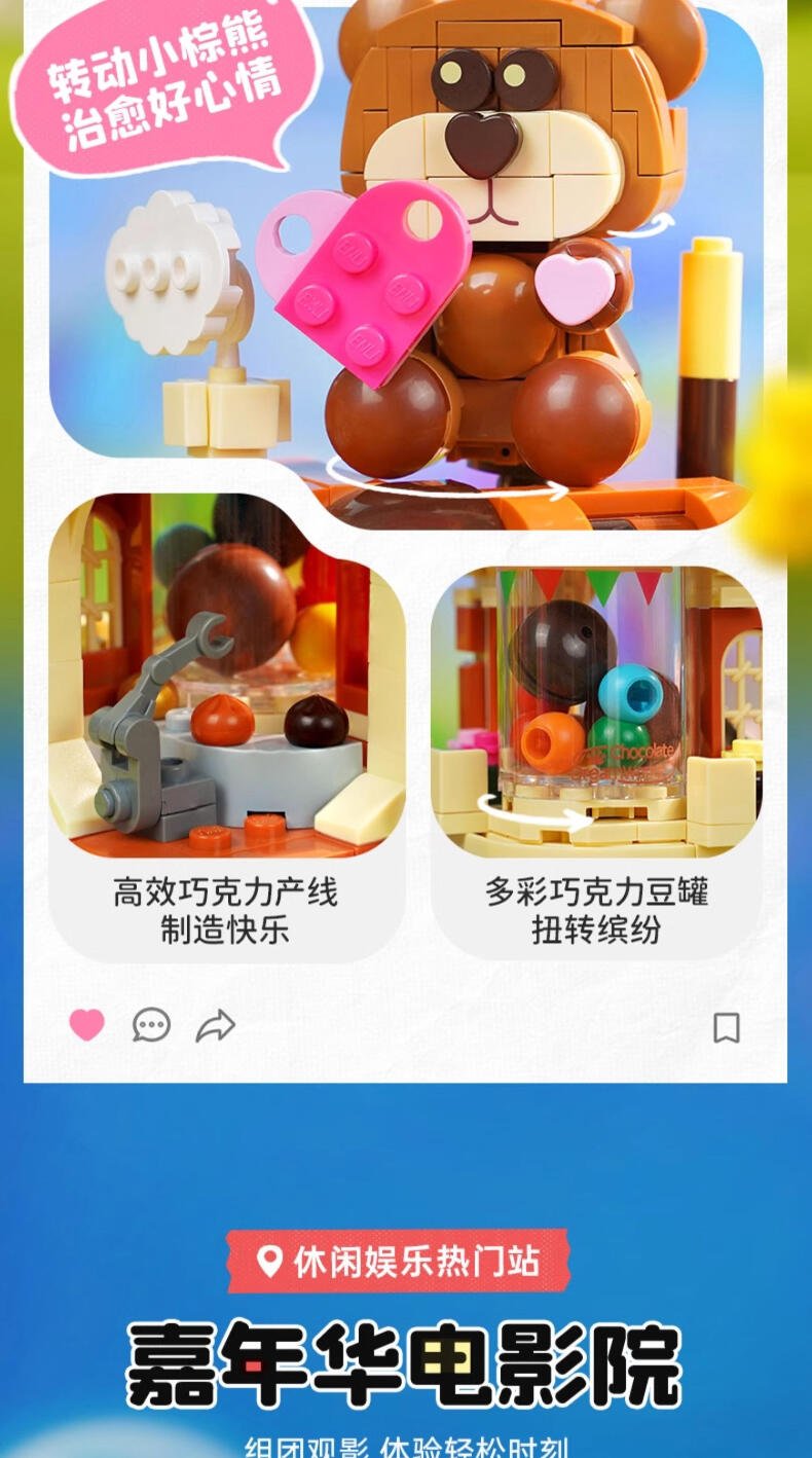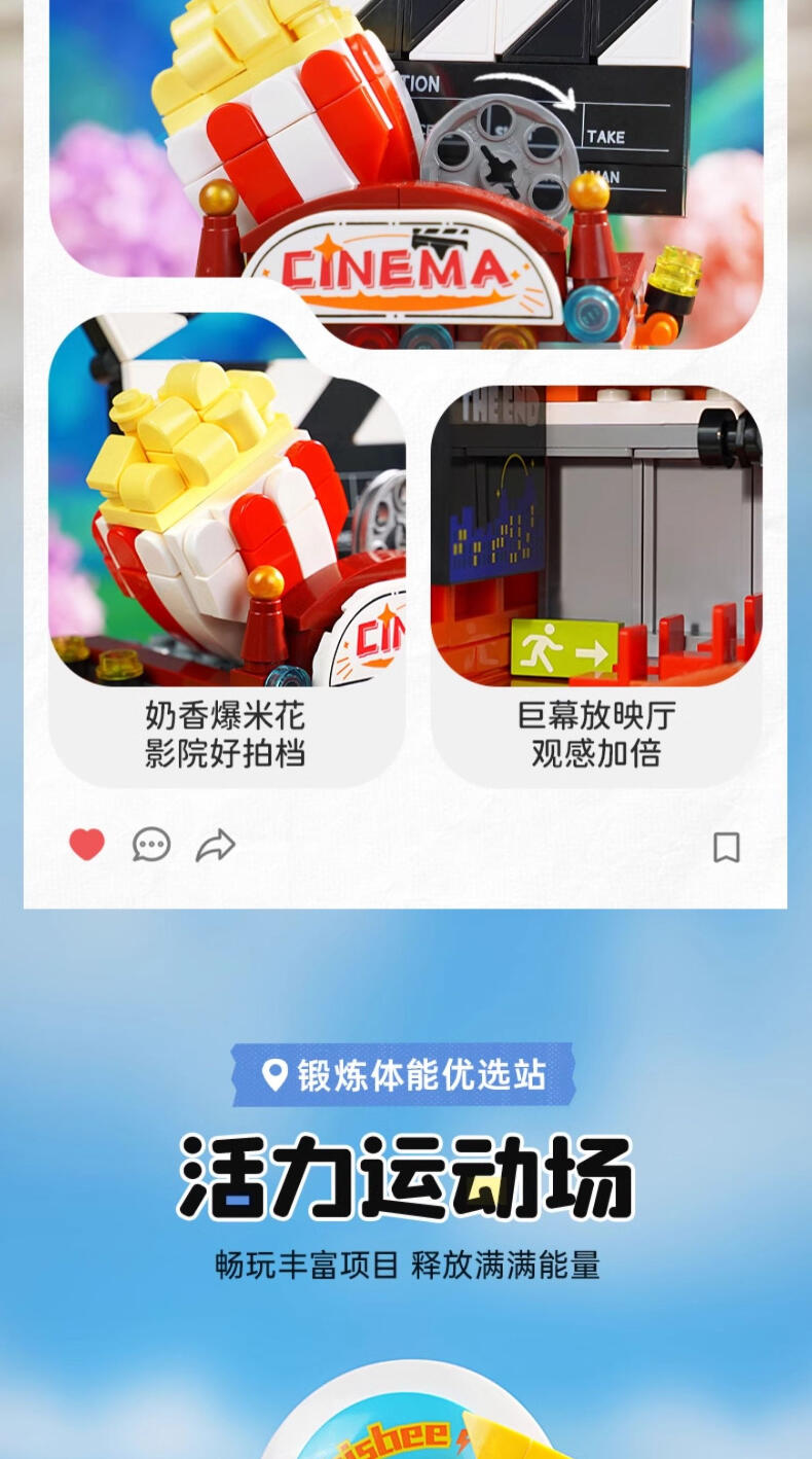 1、延续两层的建筑结构,产品兼备高颜值和高性价比; 2、休闲放松主题:高度契合年轻人放松休闲的活动主题; 3、整体活力缤纷的色彩搭配加上简易拼搭,入门友好。