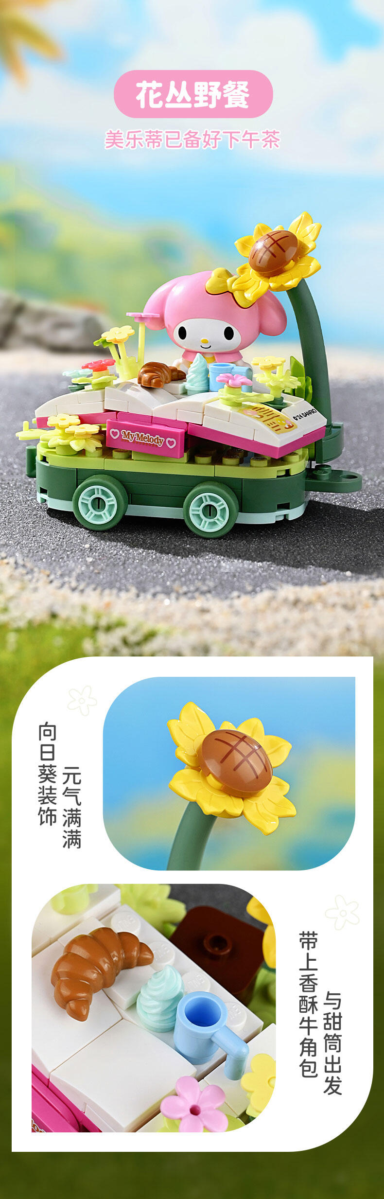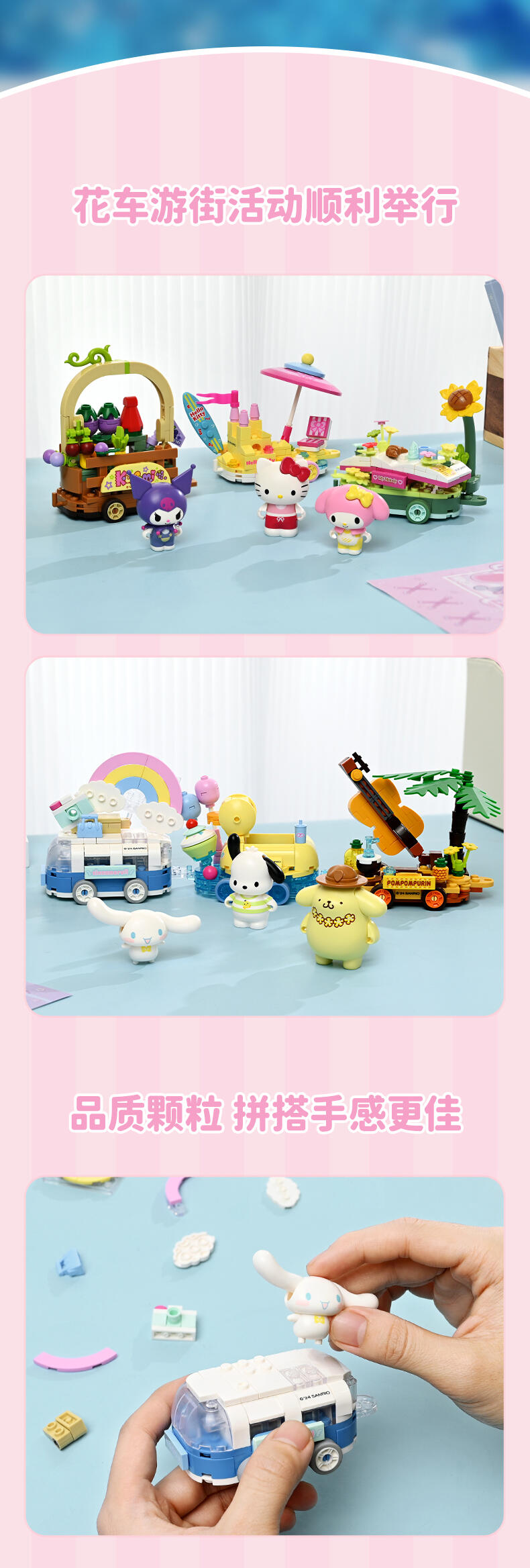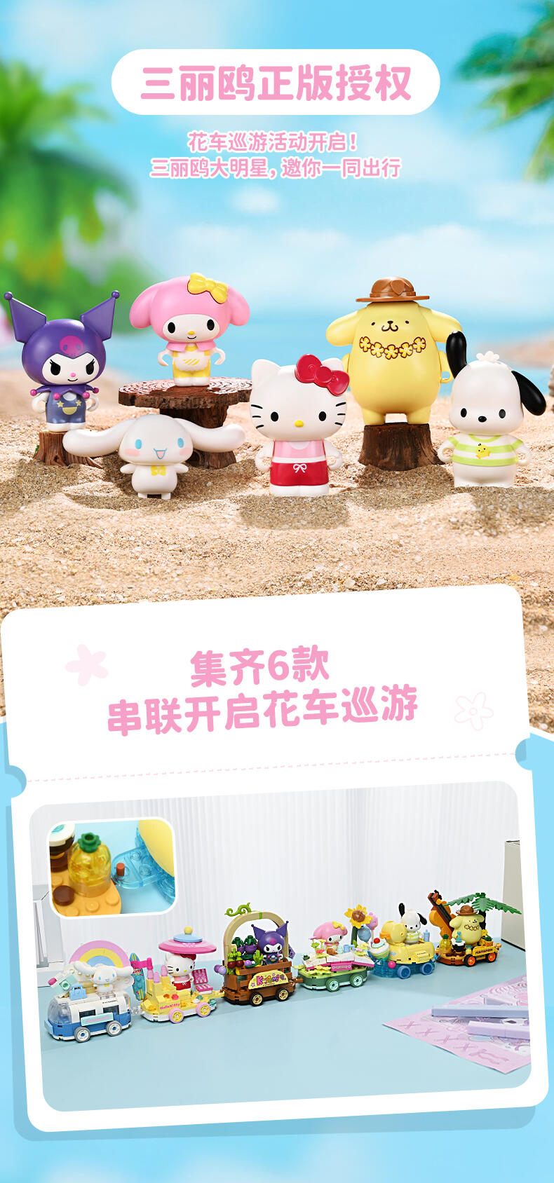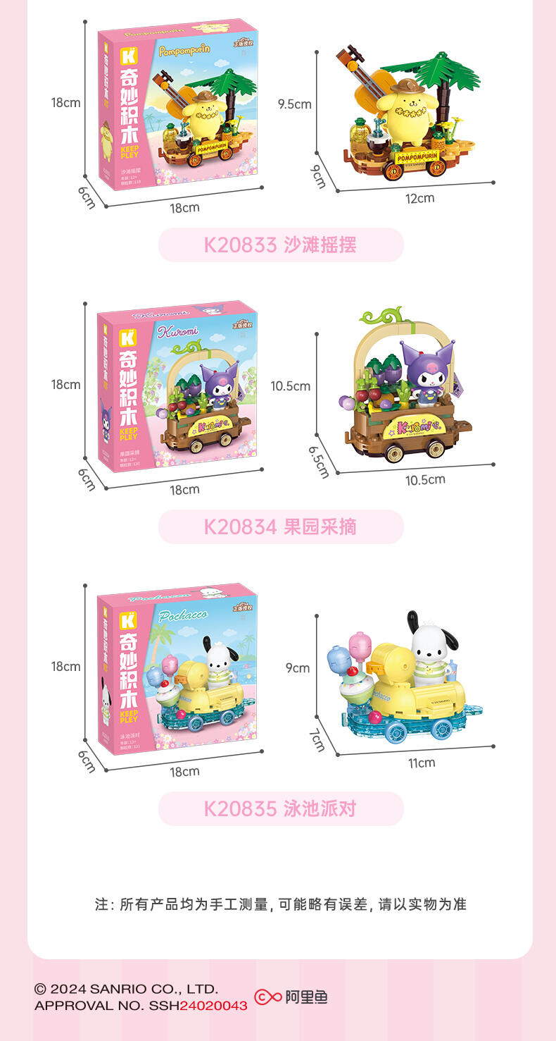 1、人气角色:高度还原三丽鸥高人气角色,吸引更多消费者购买; 2、休闲放松主题:高度契合年轻人放松休闲的活动主题; 3、串联把玩:每款可串联起来,底部轮子可动,形成花车巡游。
